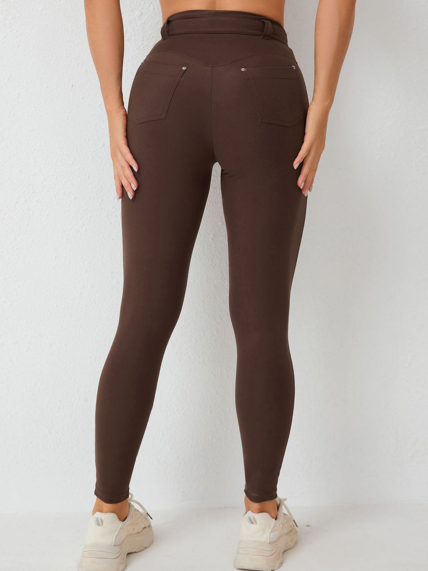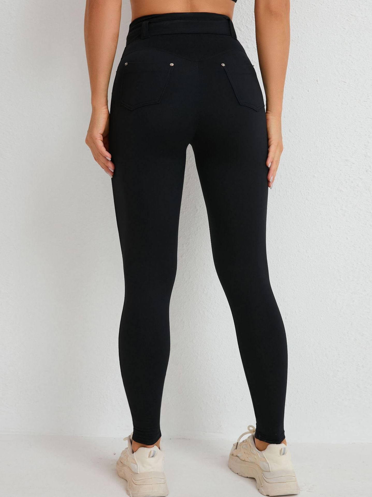 ZASUWA Female High-waisted Adjustable Strap Solid Color Elastic Tight Basic Yoga Leggings