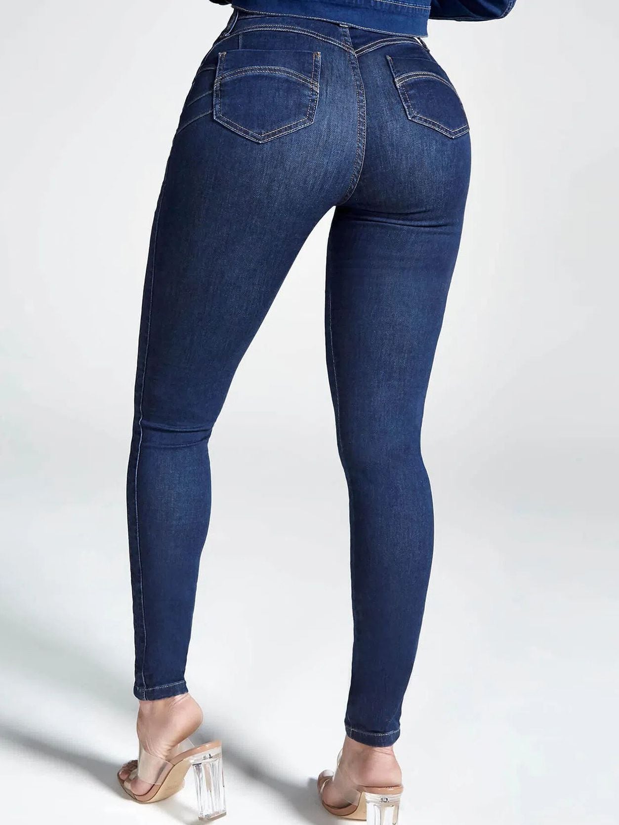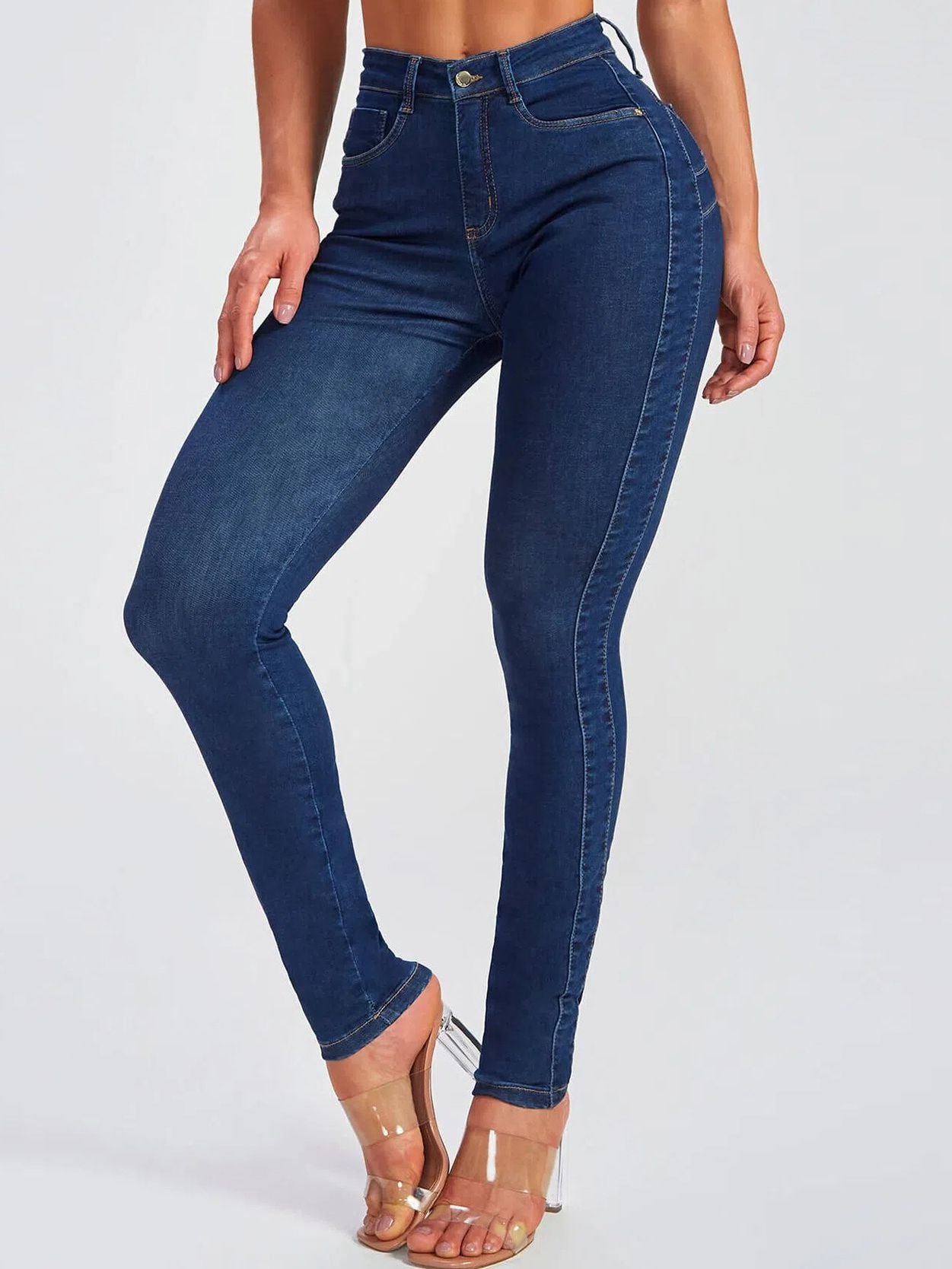 ZASUWA Female Sexy Denim Elastic Tight Pocket Cargo Leggings