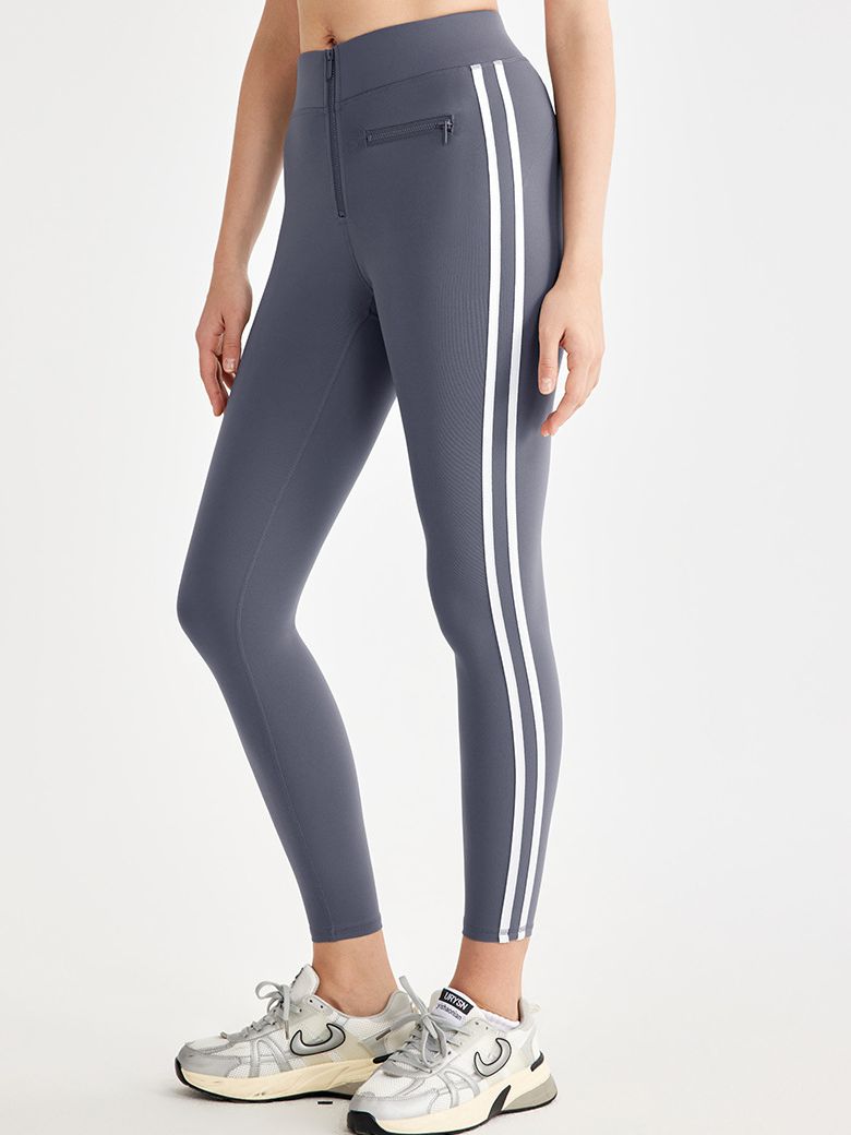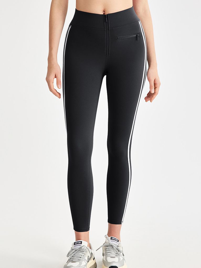 ZASUWA Female Contrast Color Stripes Zipper High-rise Leggings