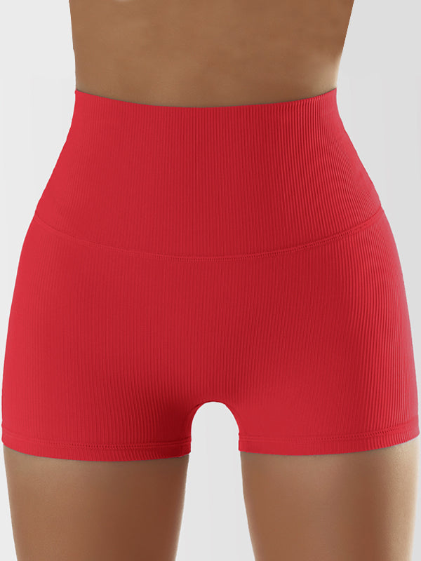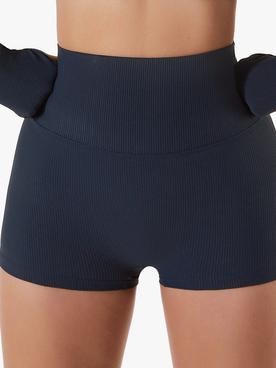 ZASUWA Female Solid Color Ribbed High-rise Spandex Gym Booty Shorts