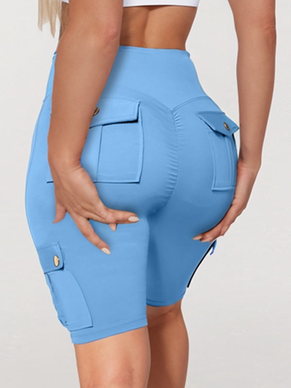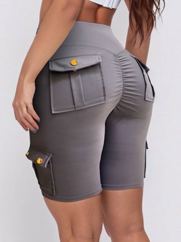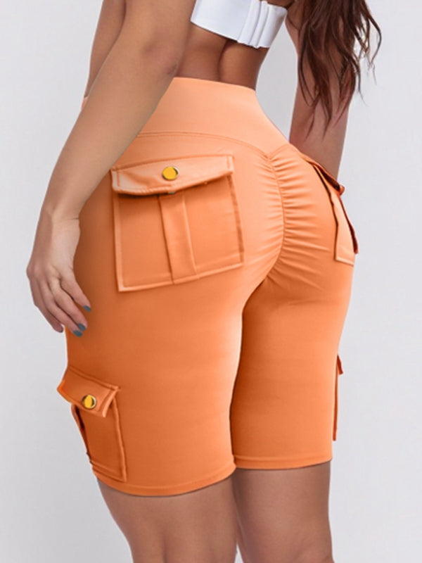 ZASUWA Female Pocket Scrunch Bum High-rise Cargo Style Spandex Gym Booty Shorts