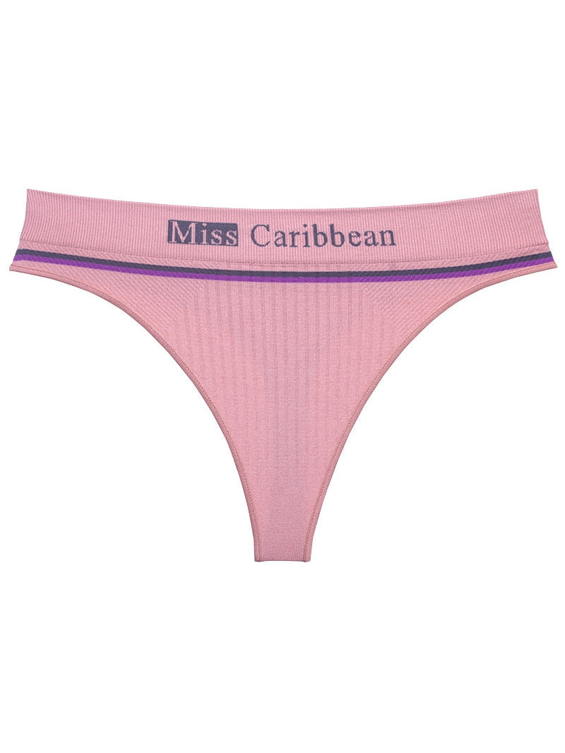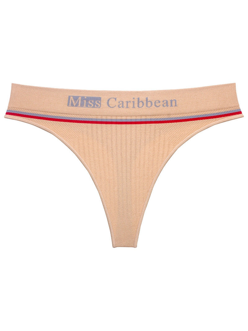 ZASUWA Female Letter Print Ribbed Fitness Thong