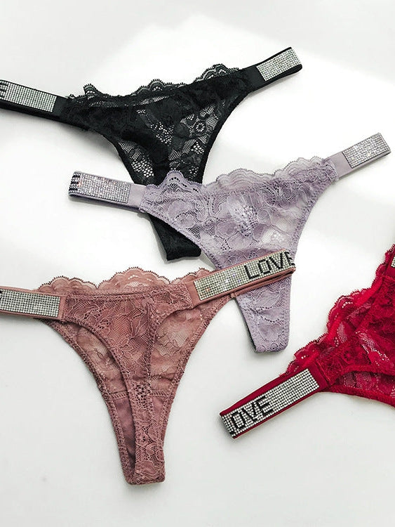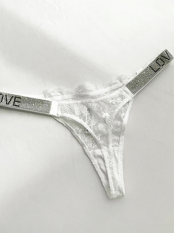 ZASUWA Female Love Print Lace Dazling Diamond Thong