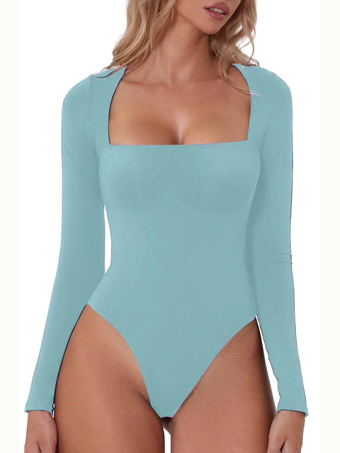 ZASUWA Female Fashion Square Collar Long Sleeves Bodysuit