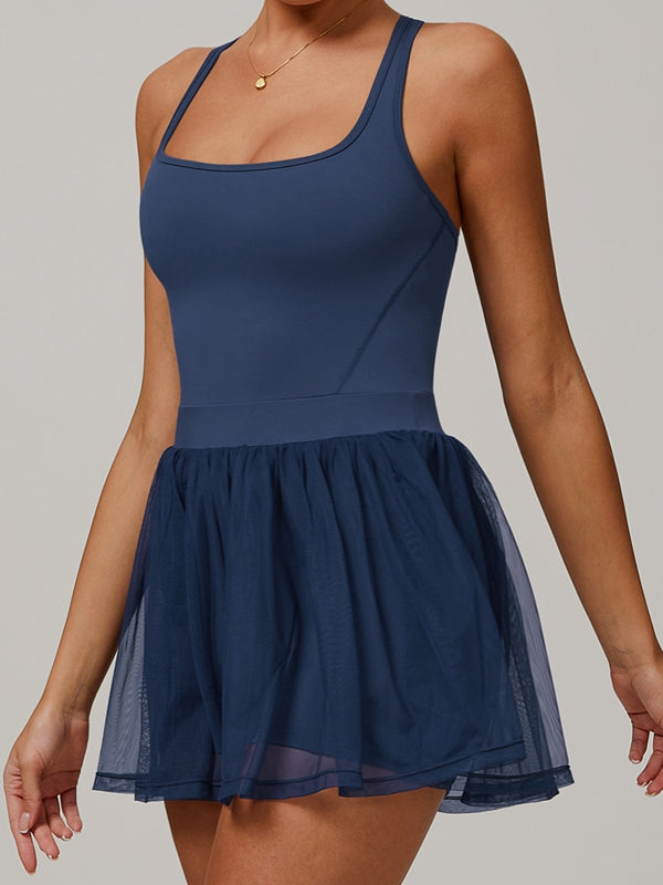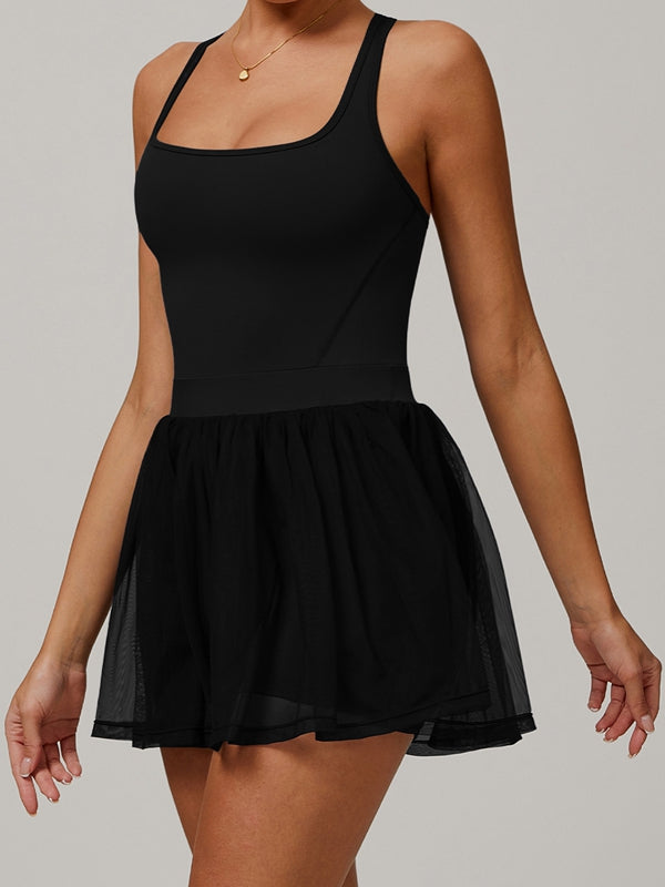 ZASUWA Female Solid Color Mesh 2 in 1 Quick-dry Dress