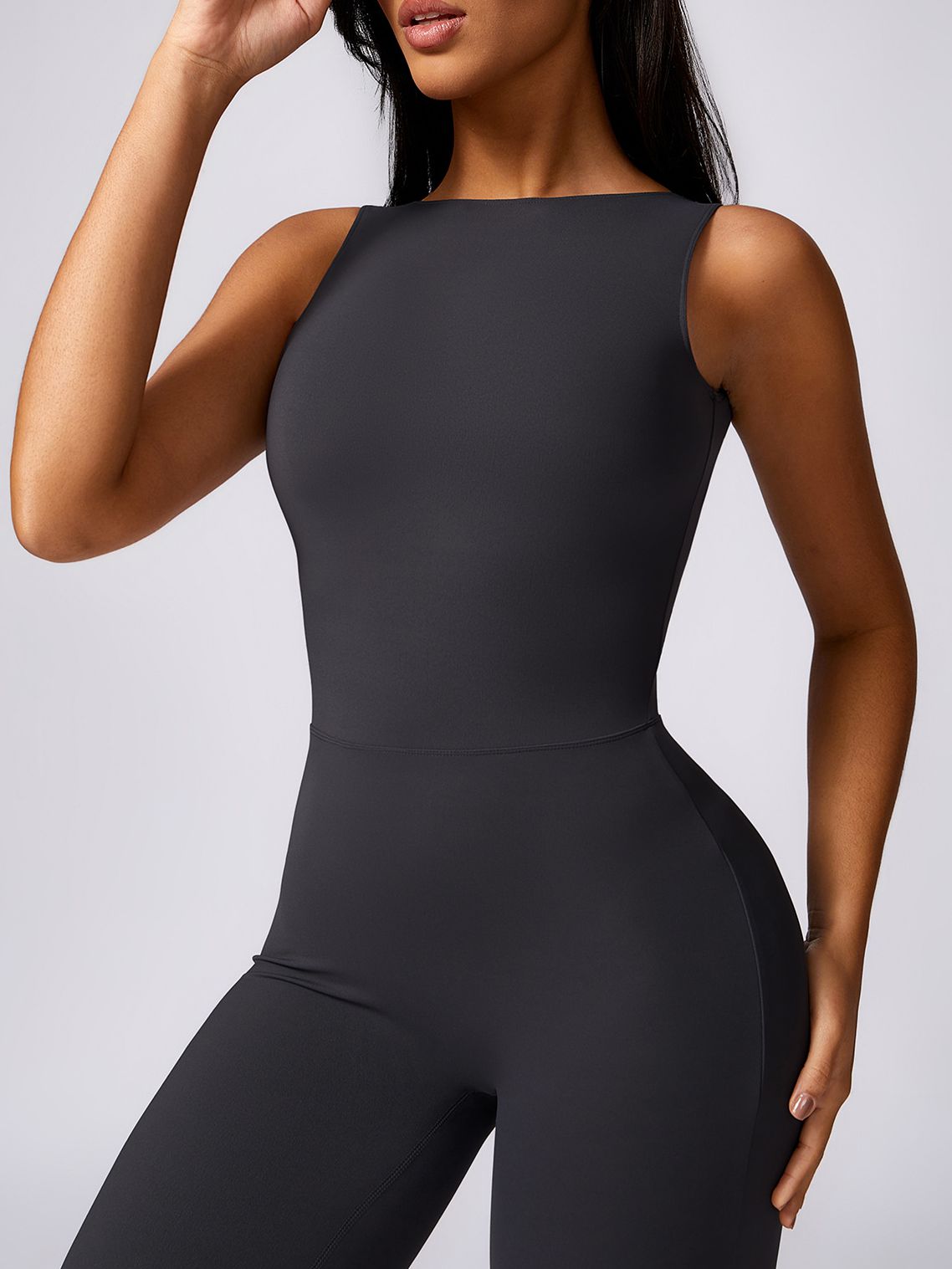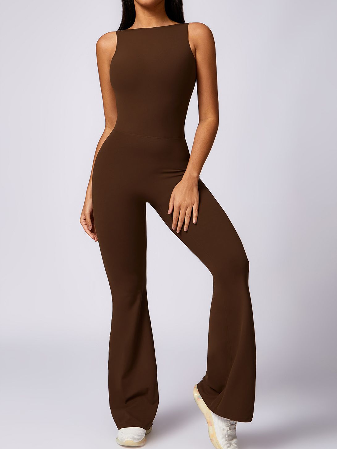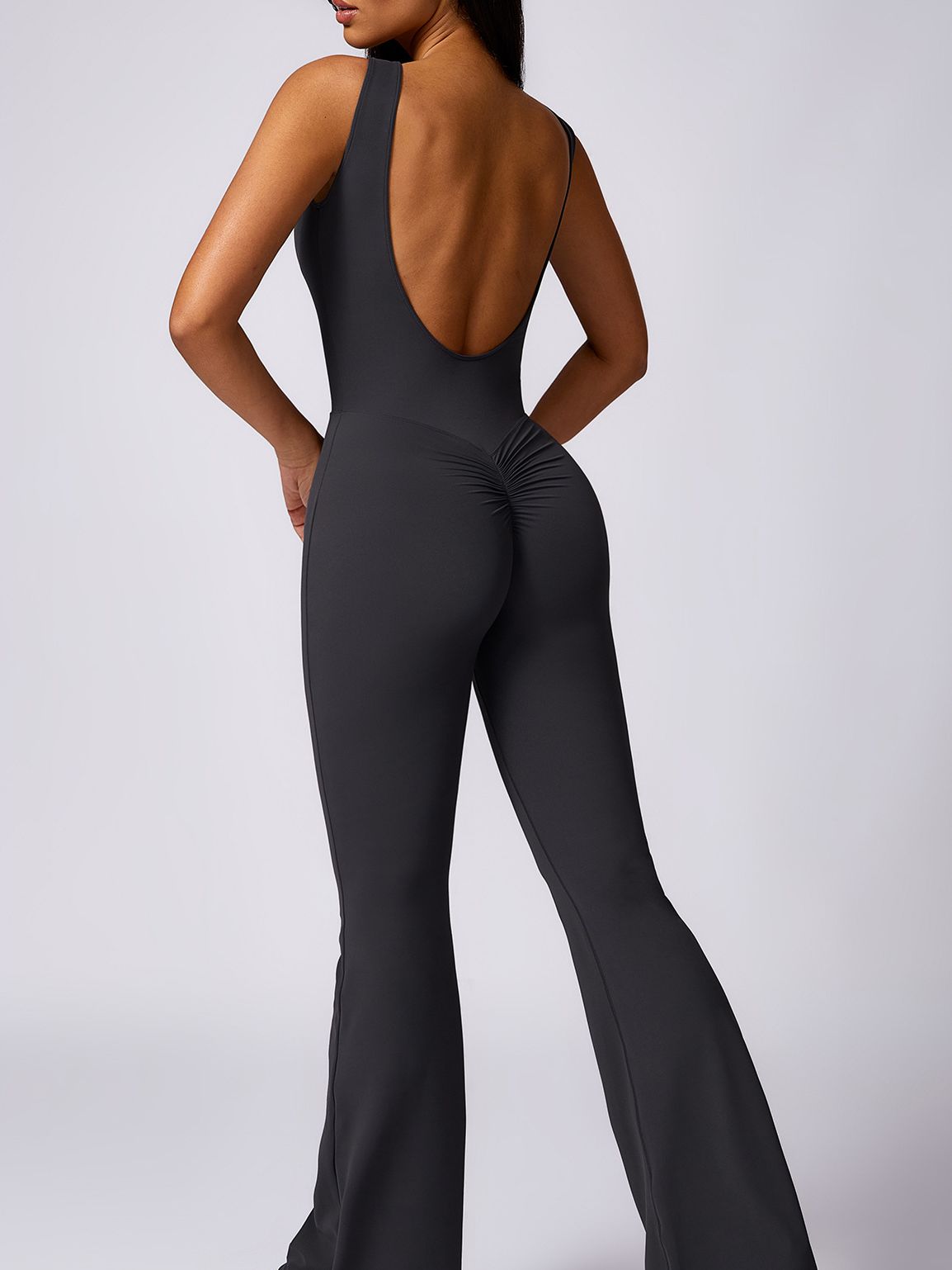 ZASUWA Female Backless Elastic Tight Scrunch Bum Flare Jumpsuit