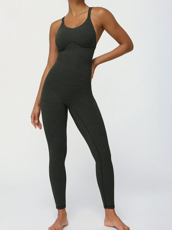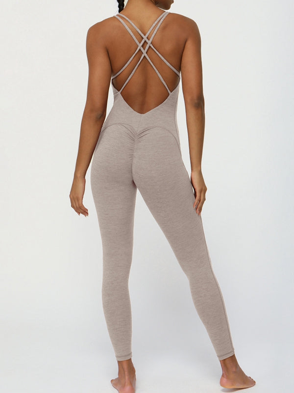 ZASUWA Female Cross Back U Collar Scrunch Bum Hip-lift Jumpsuit