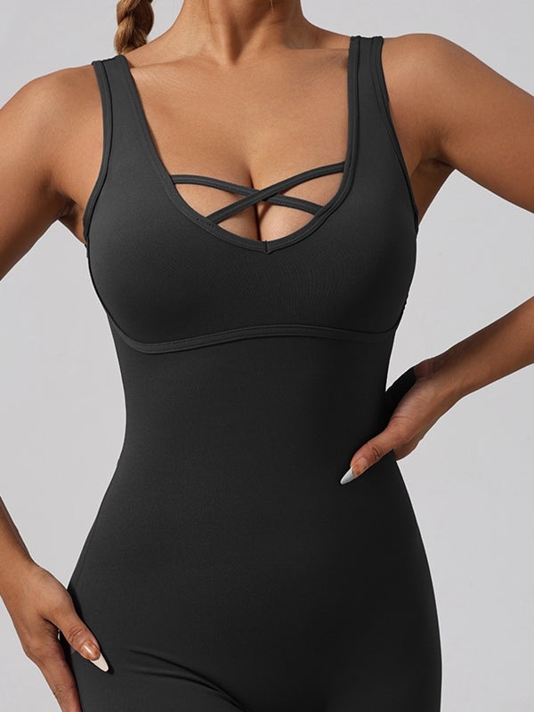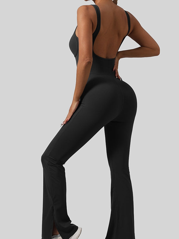 ZASUWA Female Sexy Cross Collar Backless Flare Split Jumpsuit