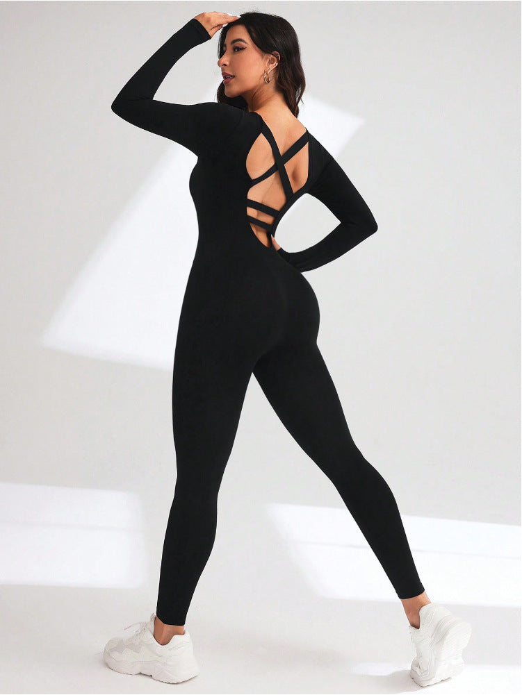 ZASUWA Female Cross Back Hollow Out Long Sleeves Jumpsuit