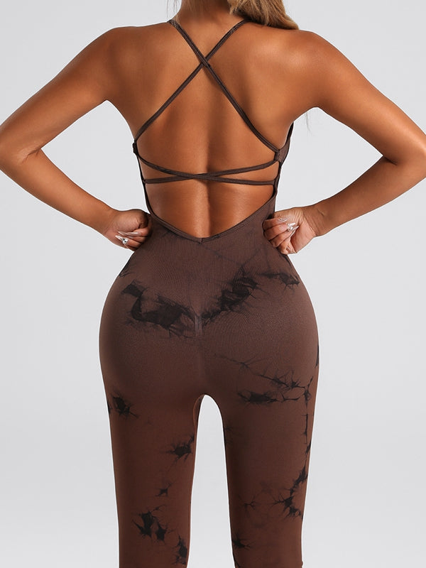 ZASUWA Female Hot Tie-dye Cross Back Flare Jumpsuit