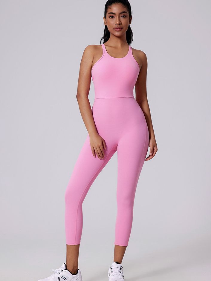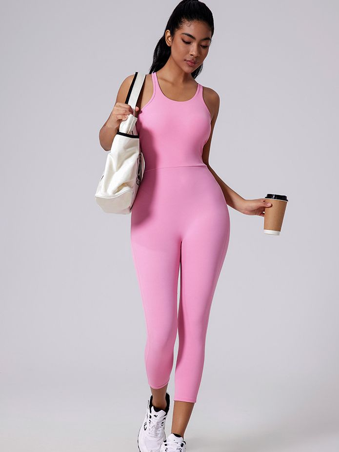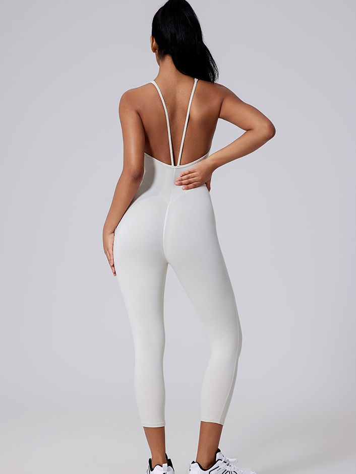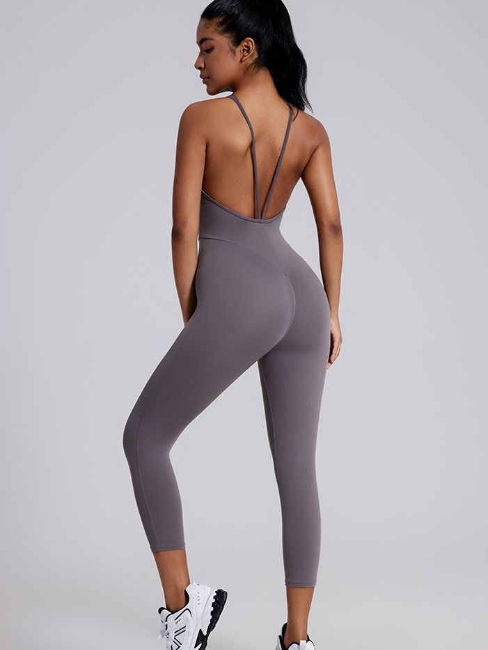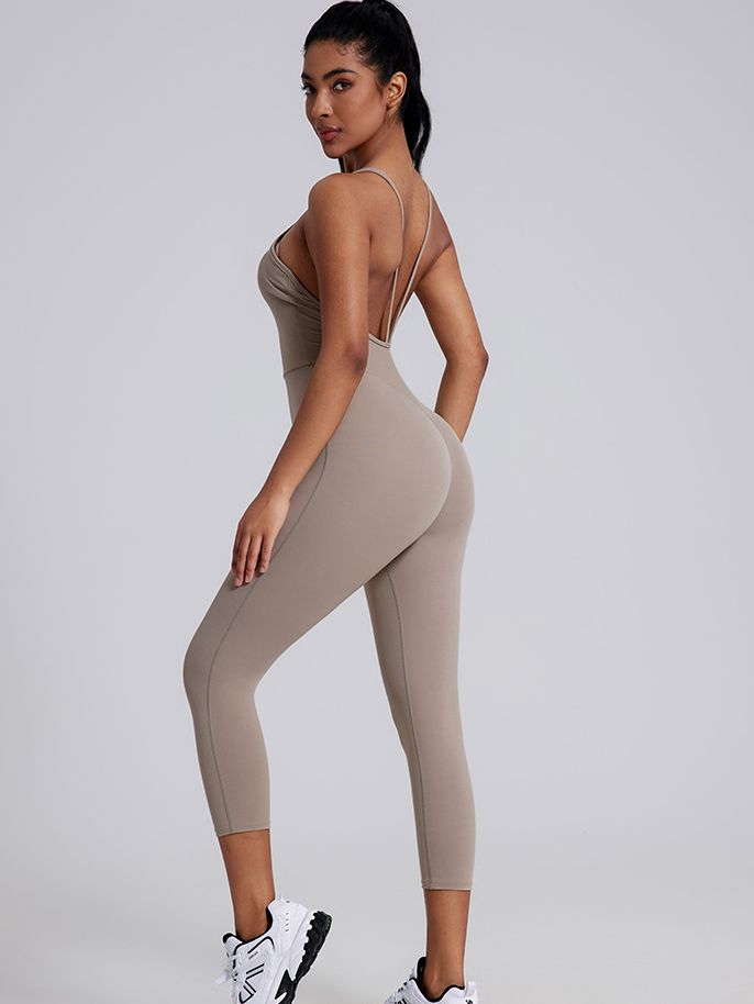 ZASUWA Female V-shaped Cross Back U Collar Backless Hip-lift Jumpsuit