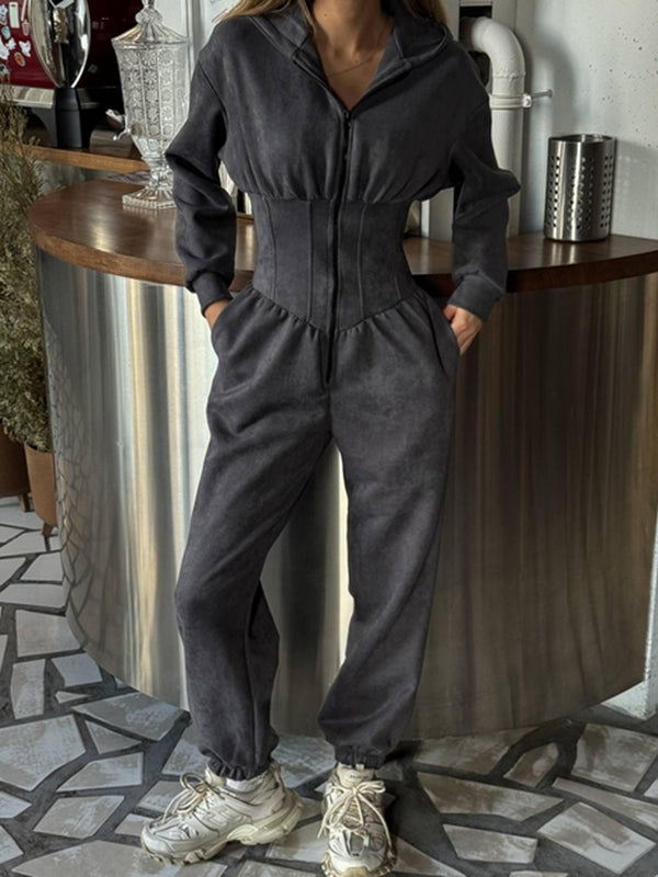ZASUWA Female Half Zipper Hooded Jumpsuit