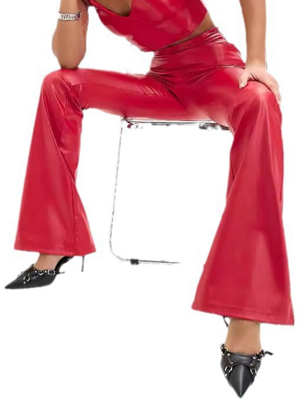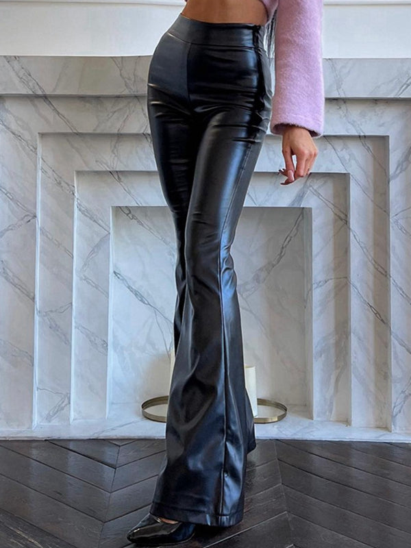 ZASUWA Female Sexy Faux Leather Flare Leggings