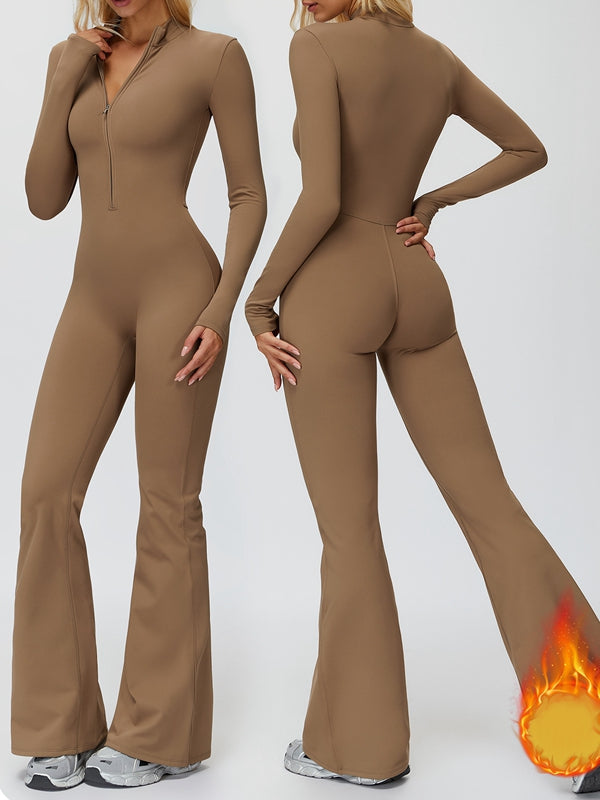 ZASUWA Female Fleece Zipper Flare Jumpsuit