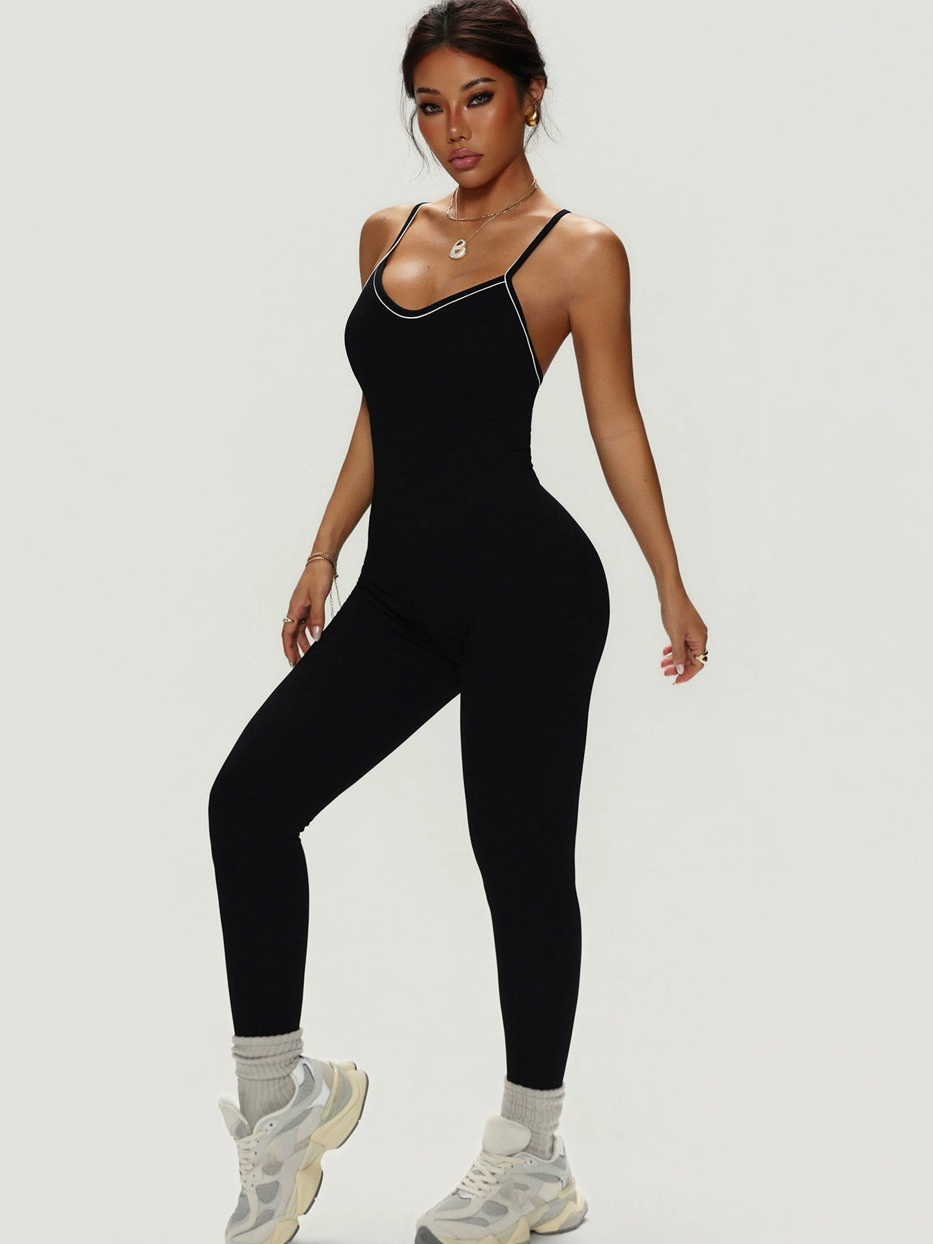 Features:The sexy push up jumpsuit with cross back design