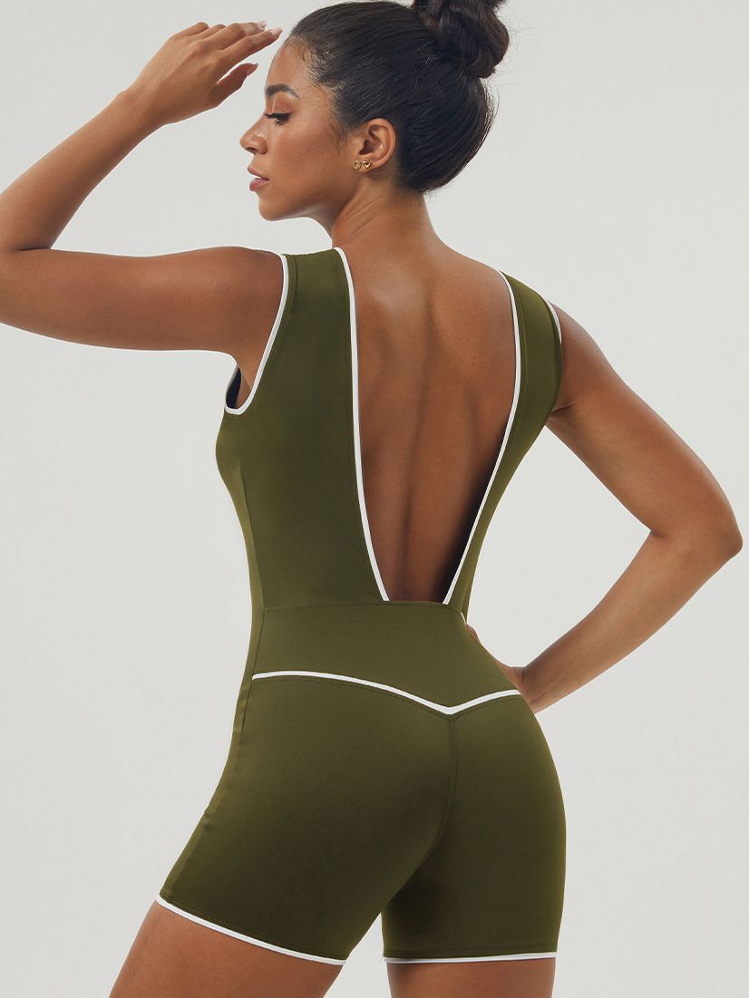 ZASUWA Female Contrast Color V-neck Backless with Chest Pads Romper