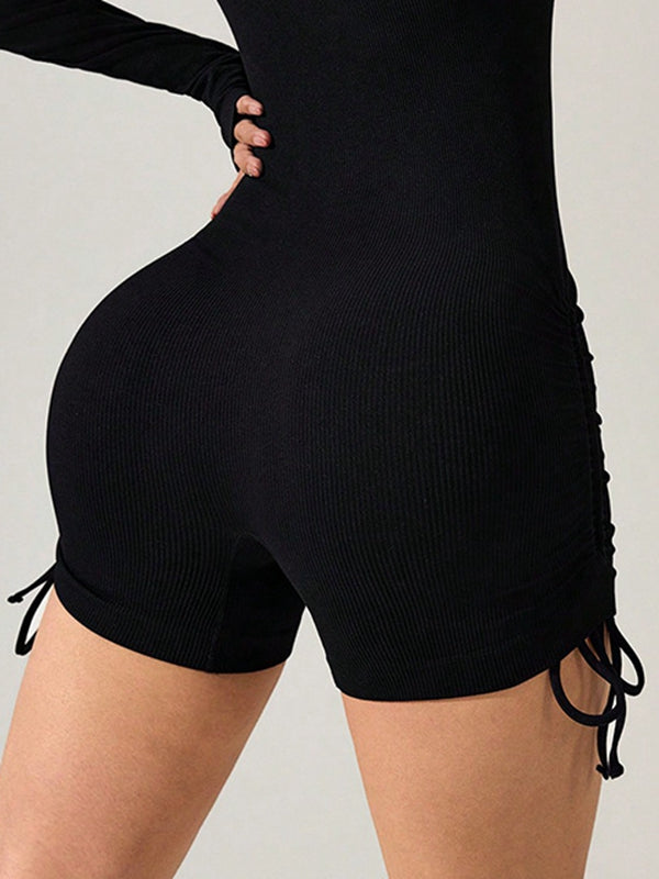 Features: Stylish romper with thumbhole design,hooded design makes sports more cool