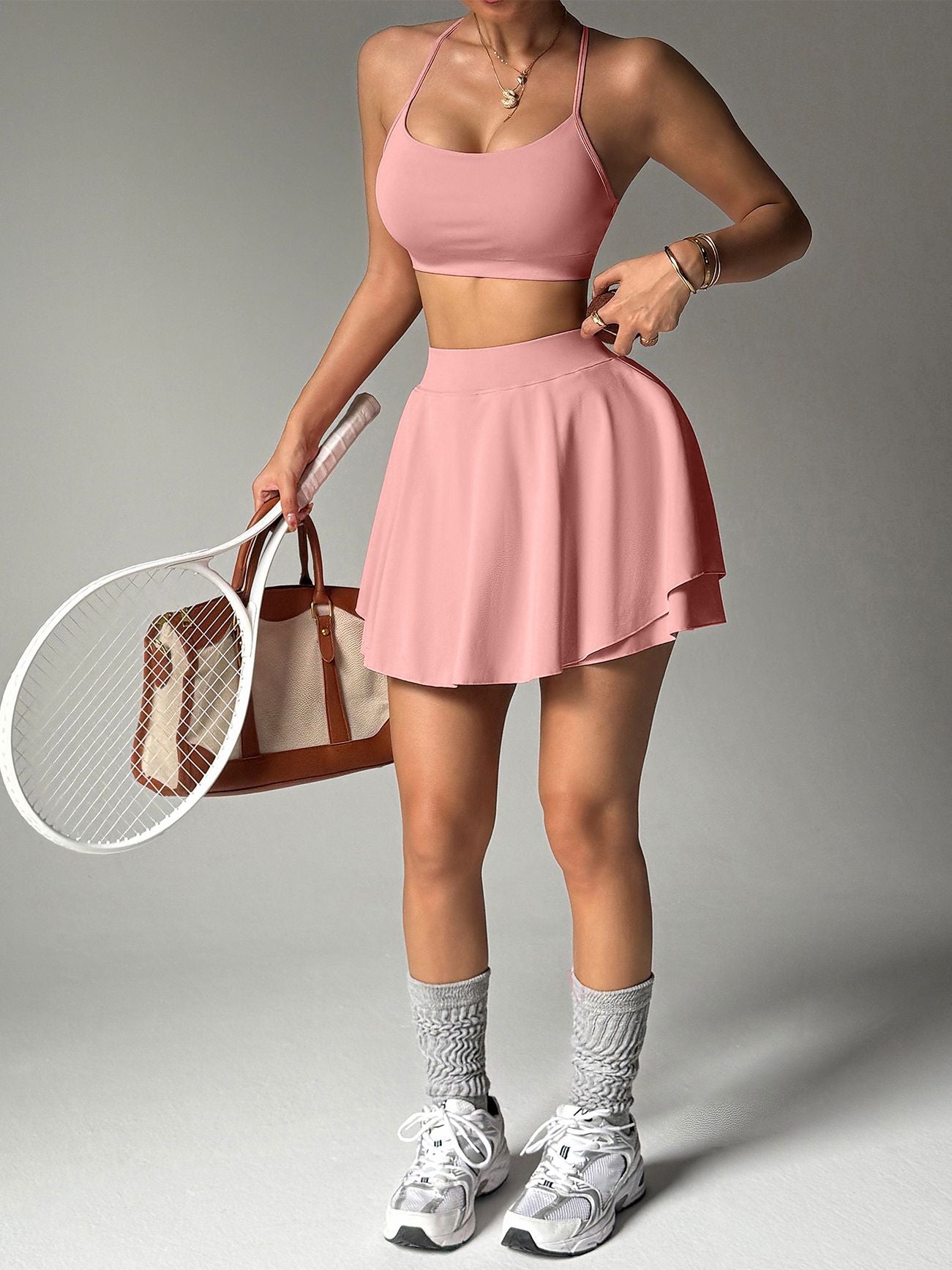 ZASUWA Female Solid Color 2 in 1 Quick Dry Skirts Suit