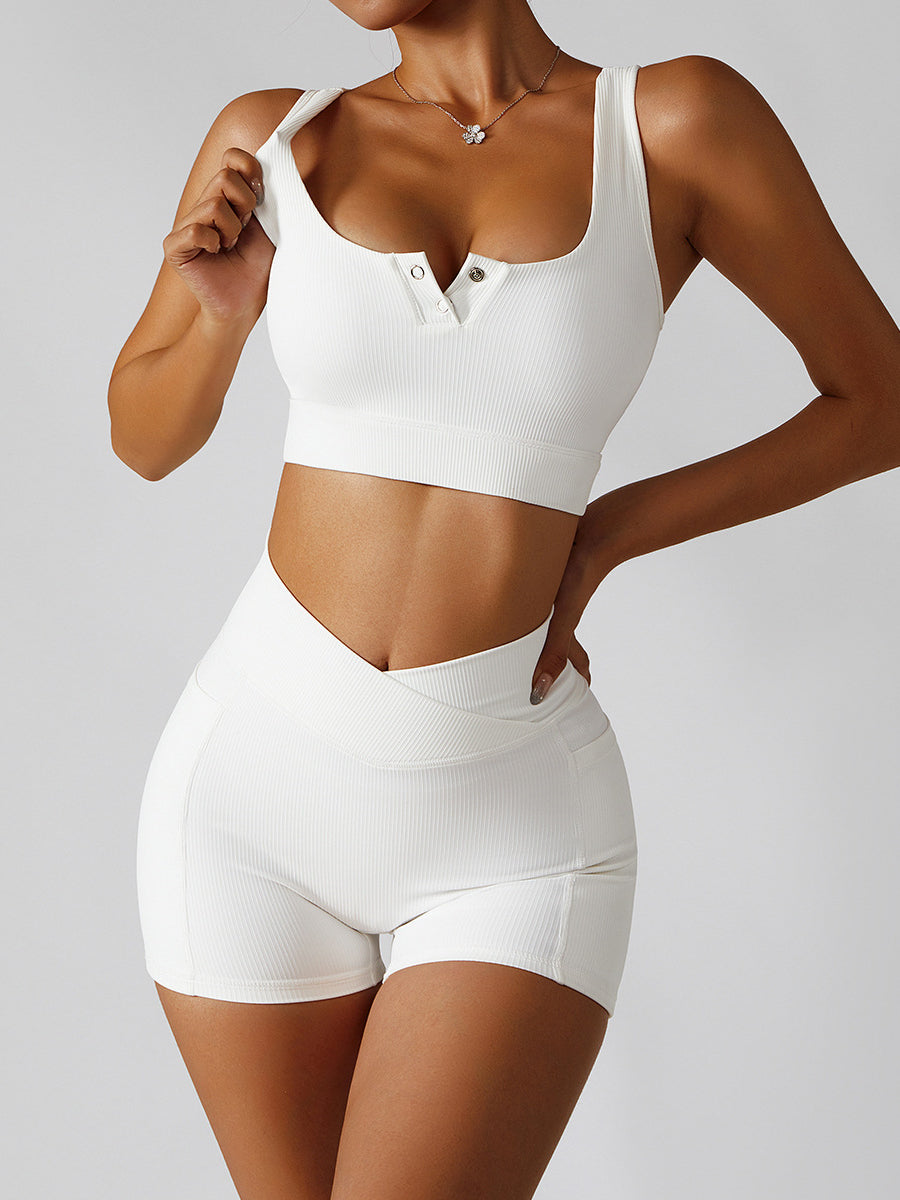ZASUWA Female Pocket Ribbed V-shape Waist Button Short Tracksuits X ANECHKAANNN ⭐