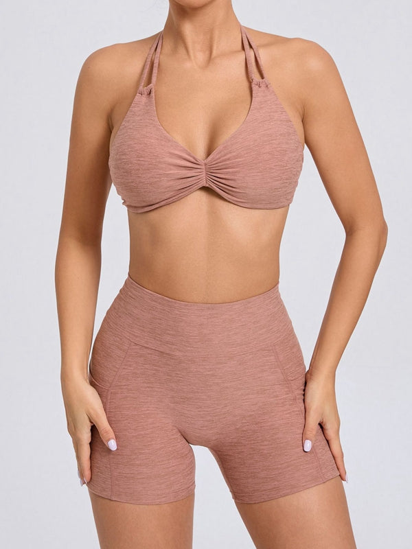 ZASUWA Female Deep V Back Pocket Scrunch Bum Halter Backless Short Tracksuit