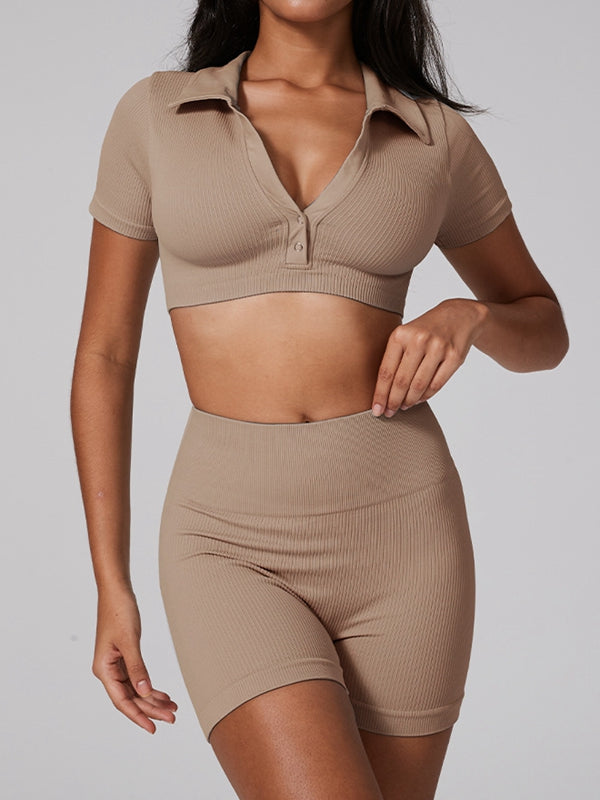 ZASUWA Female Ribbed Lapel Collar Tight Short Tracksuit