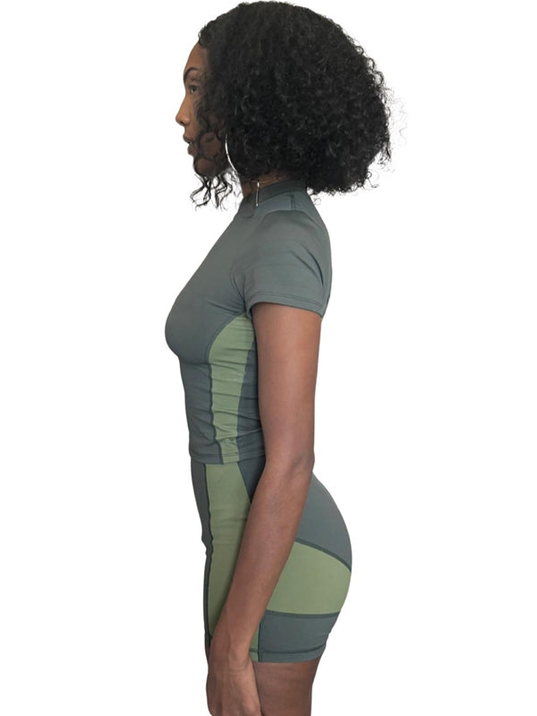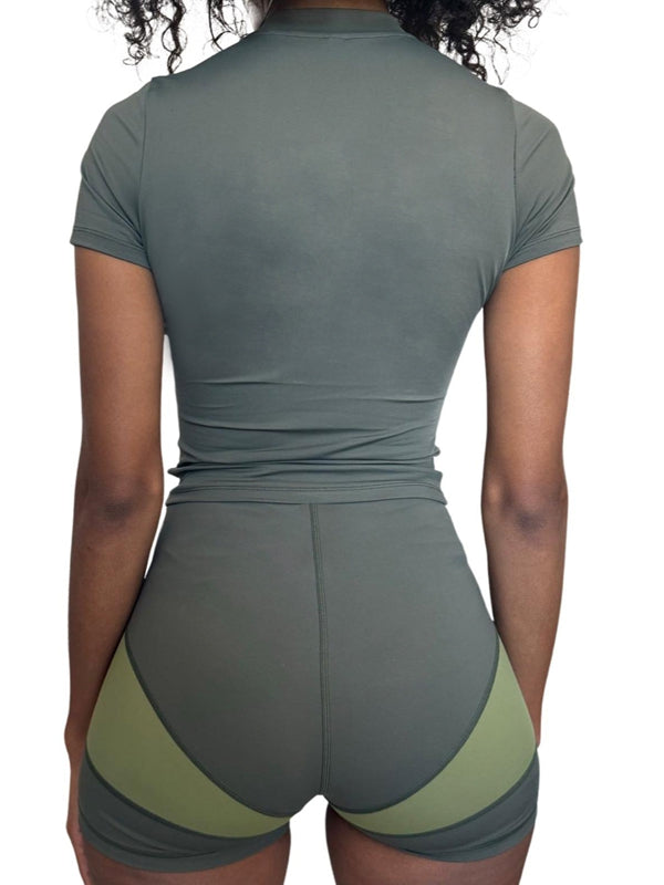 ZASUWA Female Contrast Color Zipper Elastic Tight Short Tracksuit