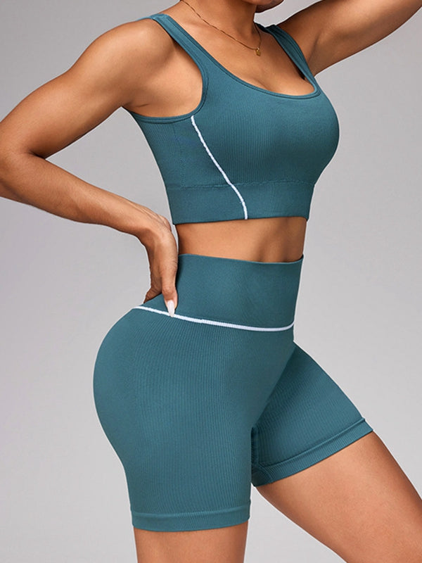 ZASUWA Female Contrast Color Stripes Seamless Short Tracksuit