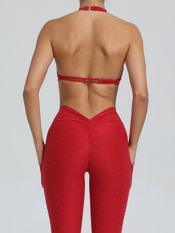 ZASUWA Female Deep V Back Pocket Scrunch Bum Halter Backless Tracksuit