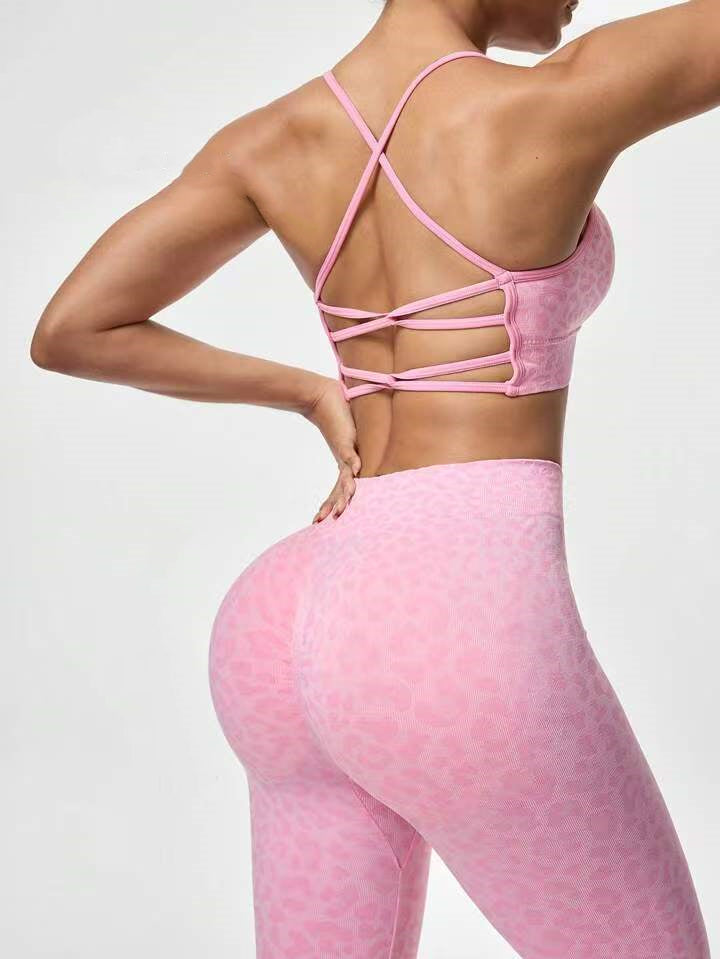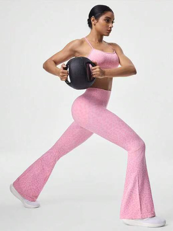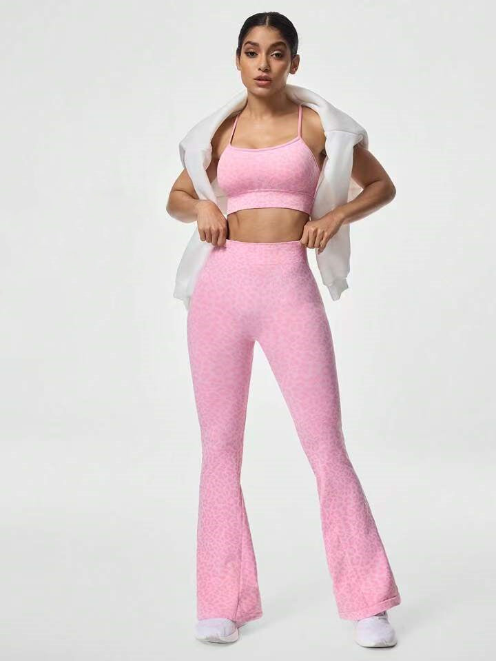 ZASUWA Female Leopard Print Cross Back Flare Design Tracksuit