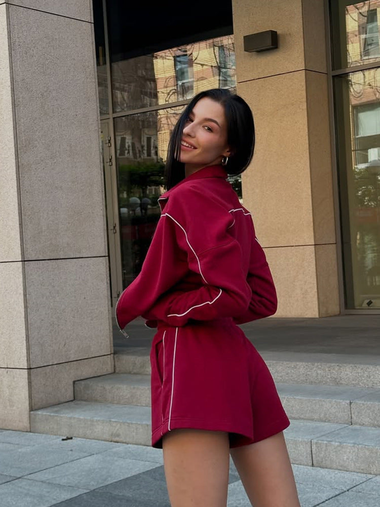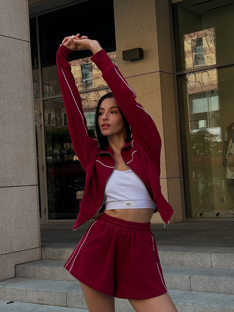 ZASUWA Female Zipper Contrast Color Short Tracksuit