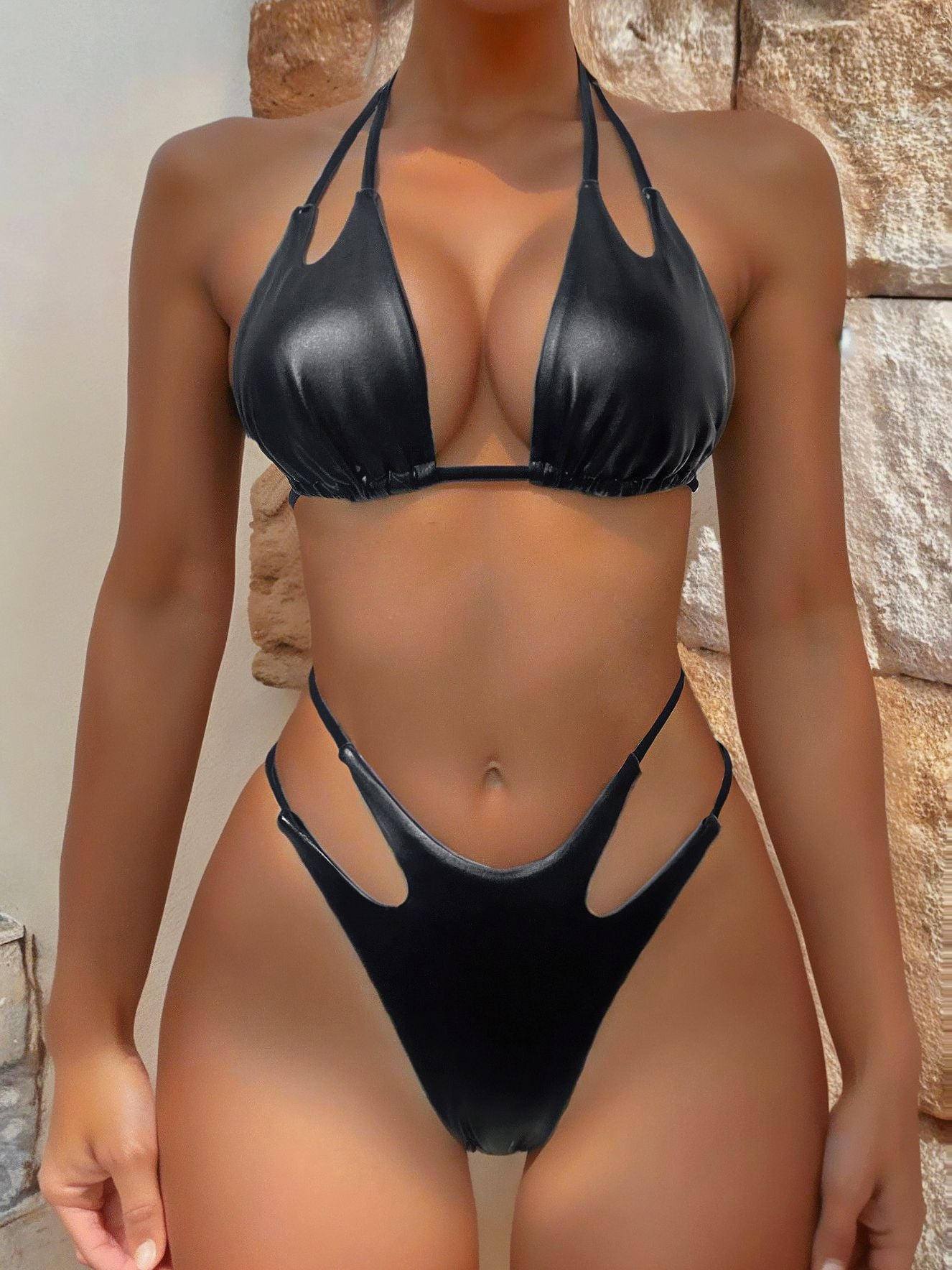 ZASUWA Female Sexy Solid Color Hollow Out Backless Bikini Set