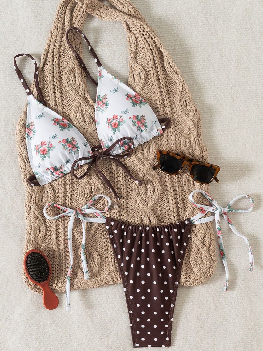 ZASUWA Female Sexy Flower Wave Point Print Bikini Set