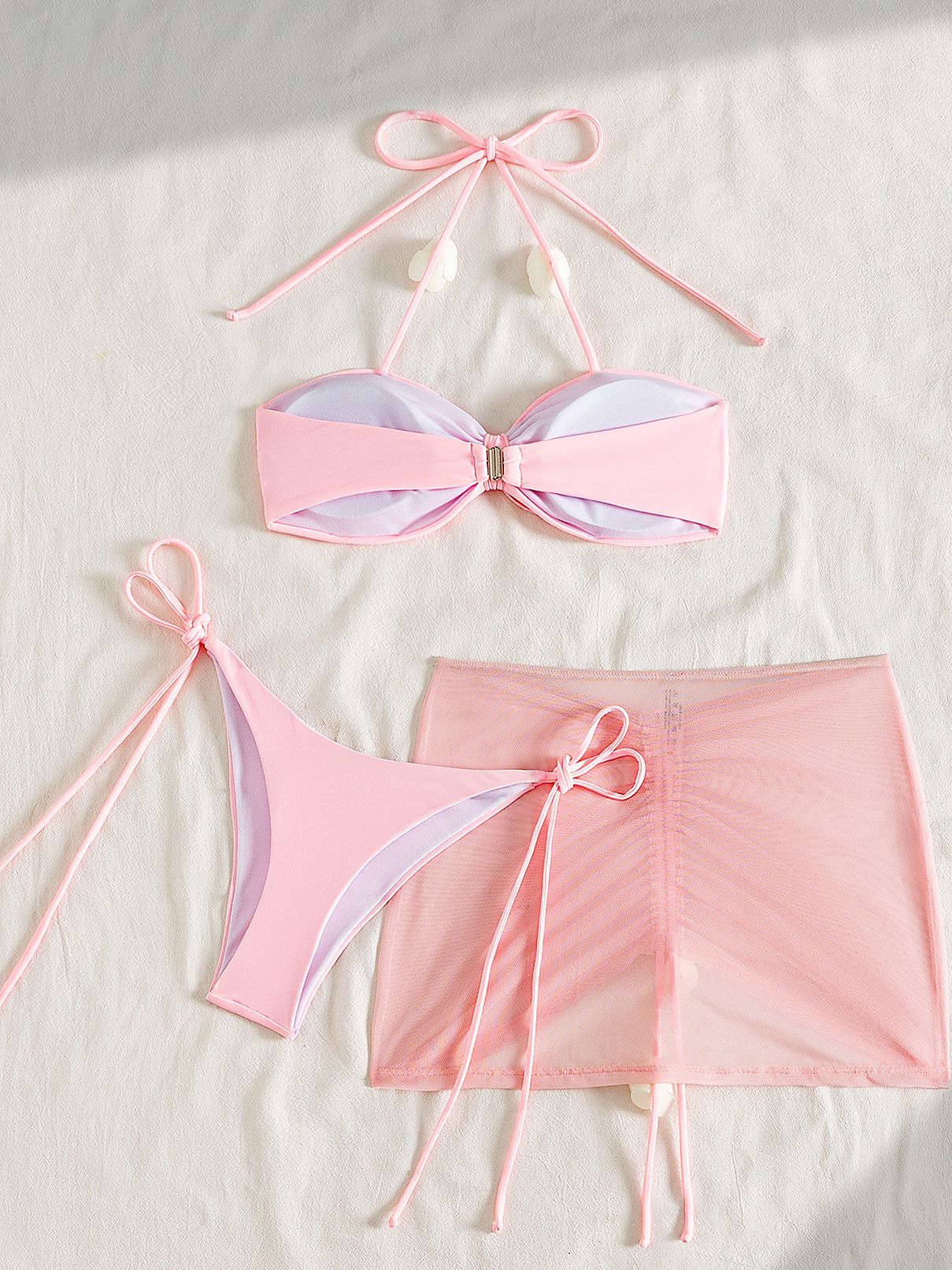 ZASUWA Female Sexy Solid Color Bow-knot 3-Pieces Lace-up Bikini Set