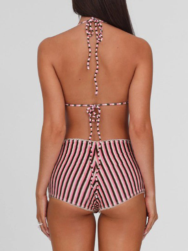 ZASUWA Female Stripe Contrast Color Halter Bikini Set