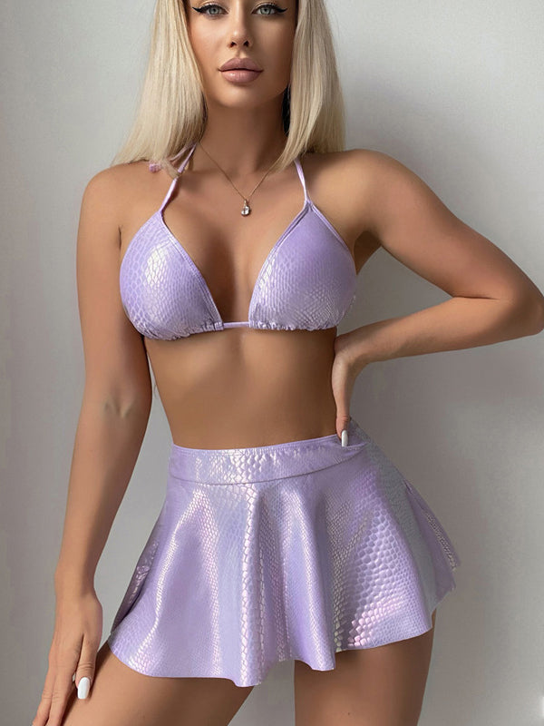 ZASUWA Female Solid Color Snake Print Backless Bikini Set