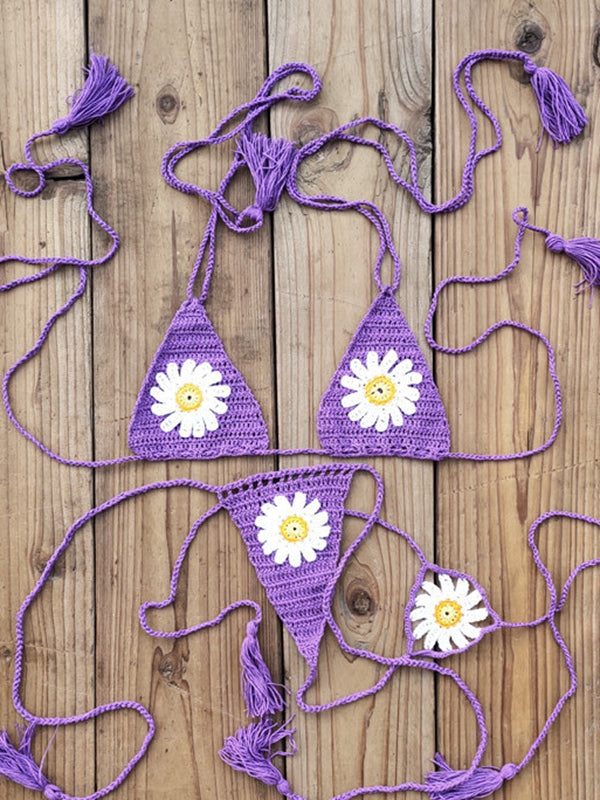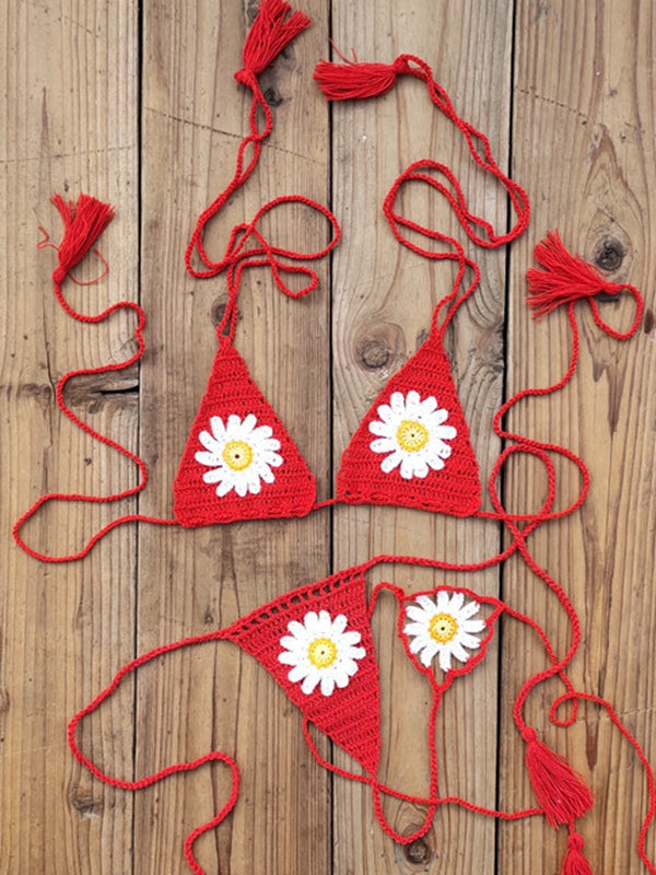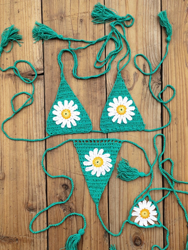 ZASUWA Female Sexy Flower Hand-knitted Bikini Set