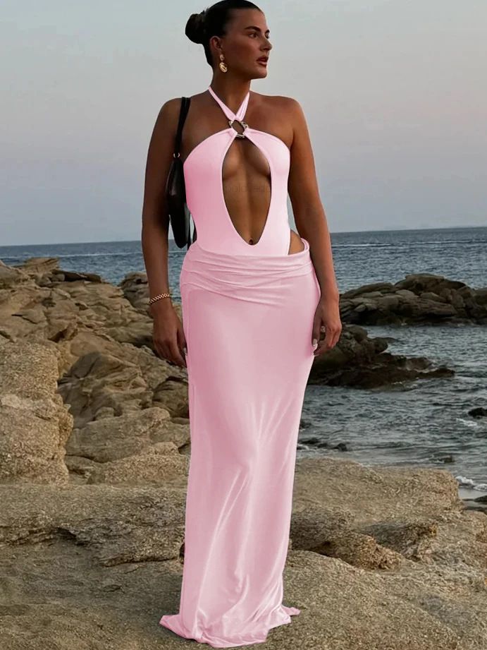 ZASUWA Female Solid Color Hollow Out Mesh Sun Protection Cover-Up 2-Pieces