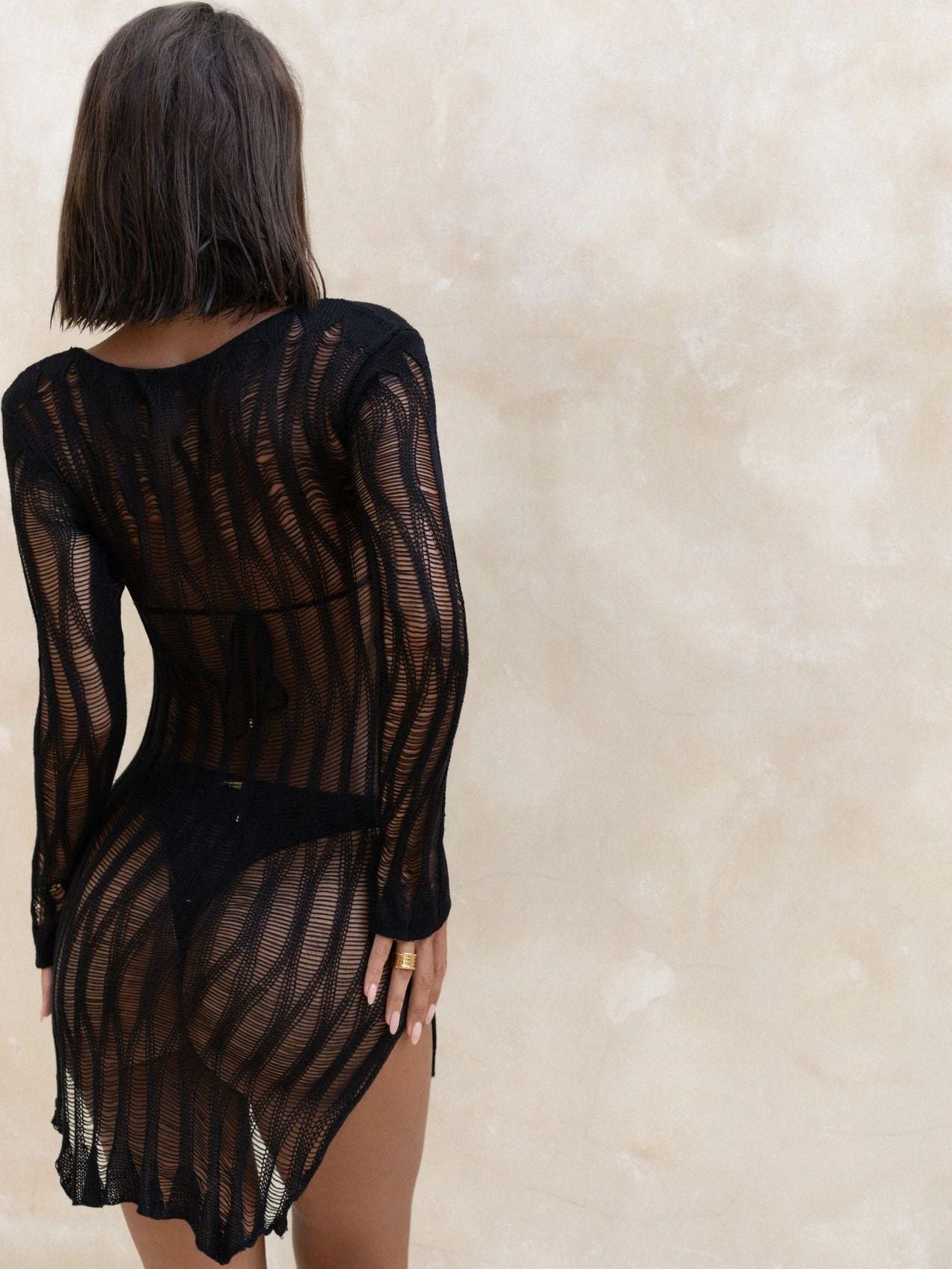 ZASUWA Female Sexy Fishnet Hollow Out Long Sleeves Swimwear Cover Dress Without Bikini Set