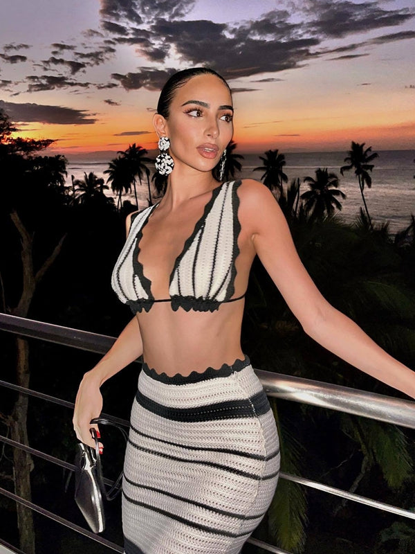 ZASUWA Female Sexy Fishnet Stripes 2-Pieces Cover-up Without Bikini
