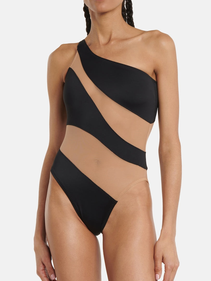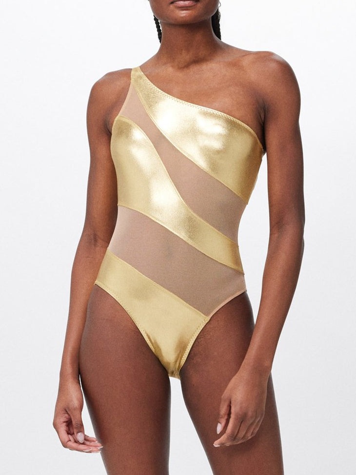 ZASUWA Female Glossy Sheer Mesh Elegance One Piece