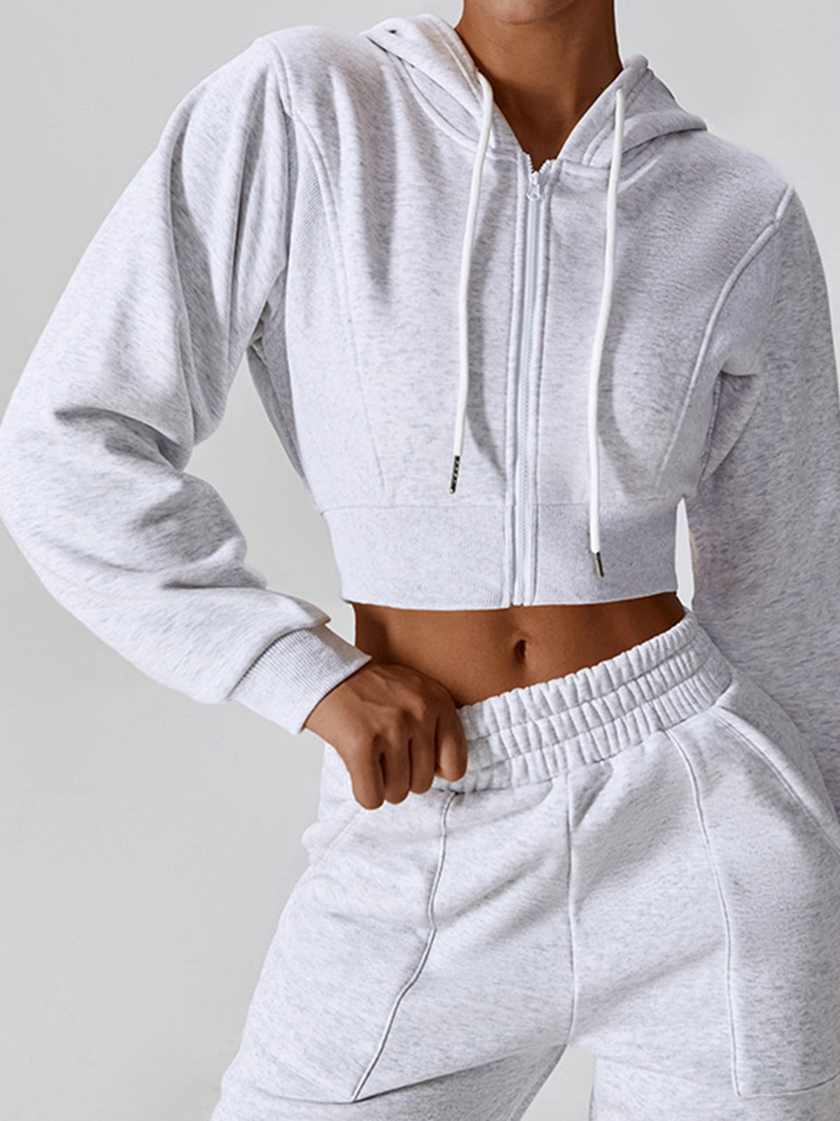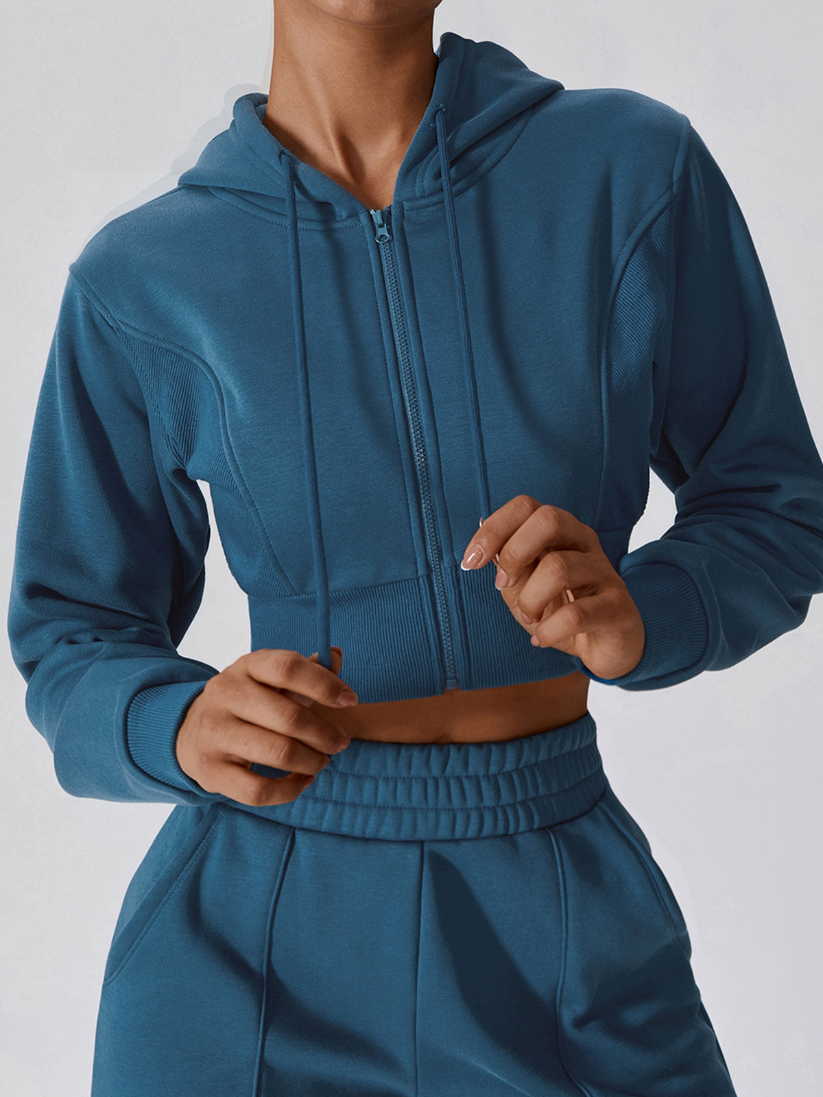 ZASUWA Female Zipper Drawstring Cropped Hoodies