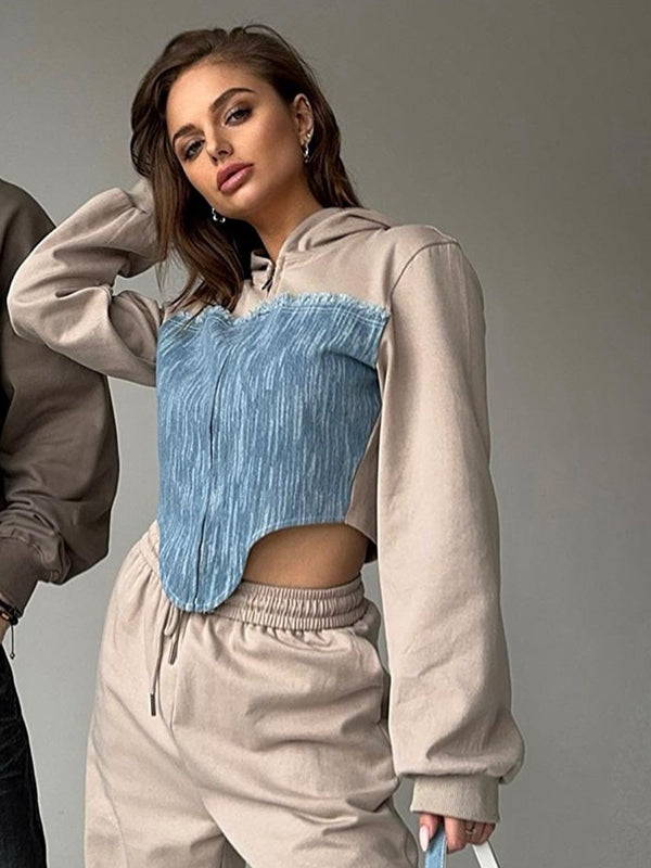 ZASUWA Female Contrast Color Denim Zipper Hoodie