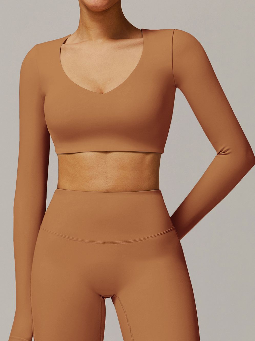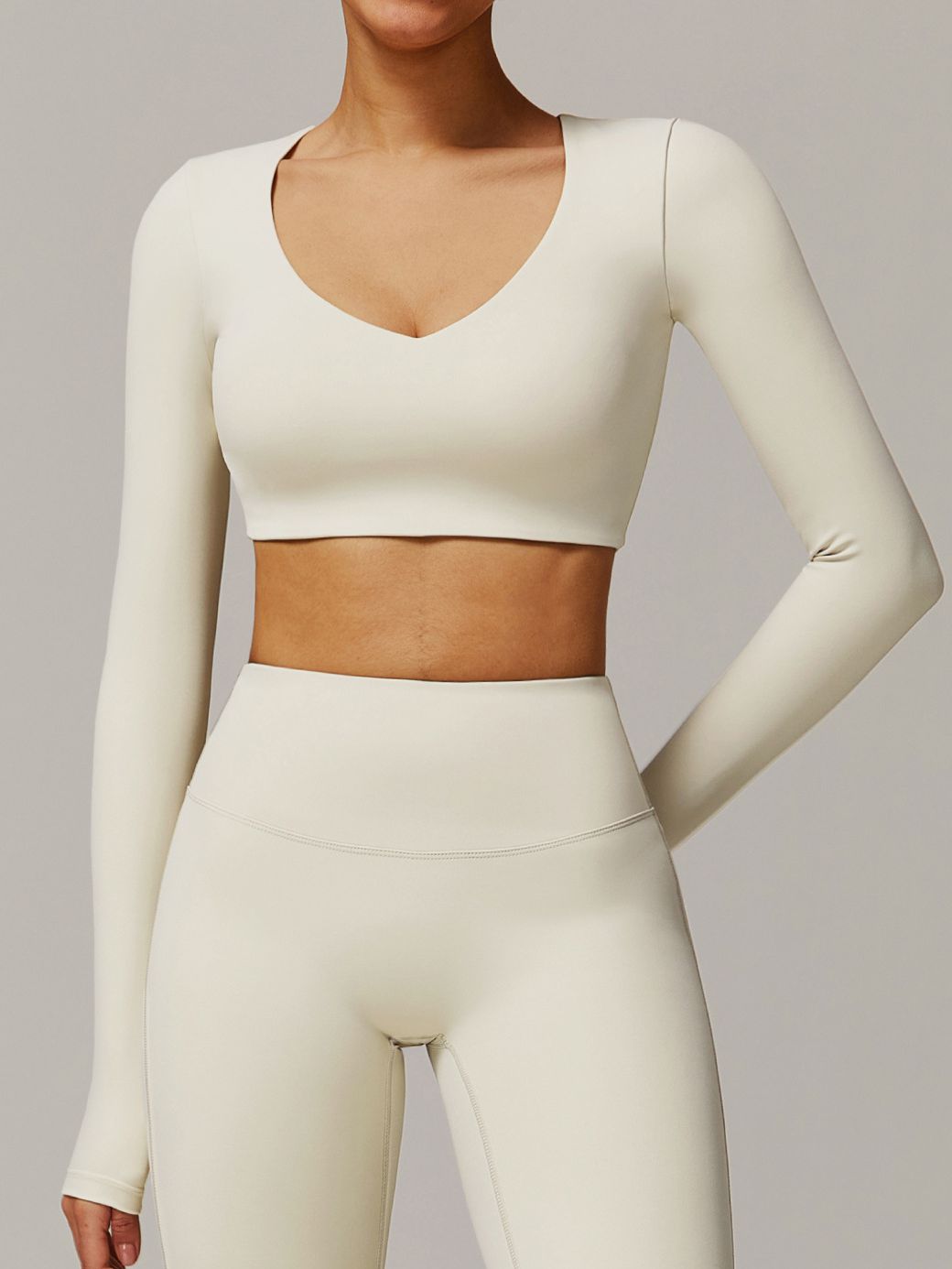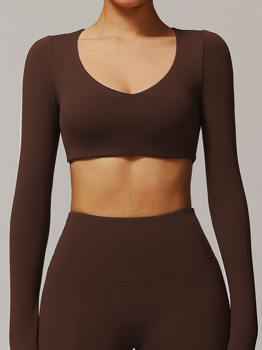 ZASUWA Female Solid Color V-neck Quick Dry Long Sleeves