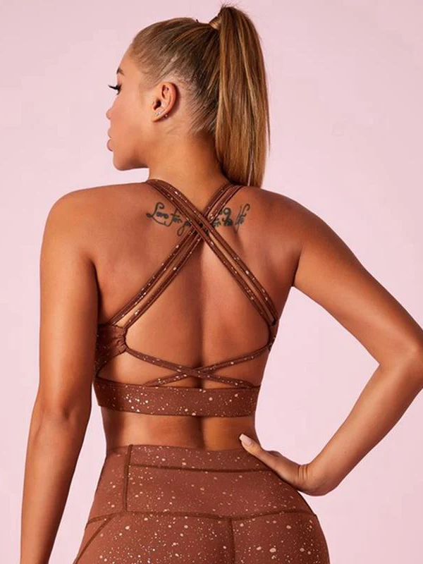 ZASUWA Female Sports Bras Trendy Glossy Big U-neck Beautify Back Sports Bras