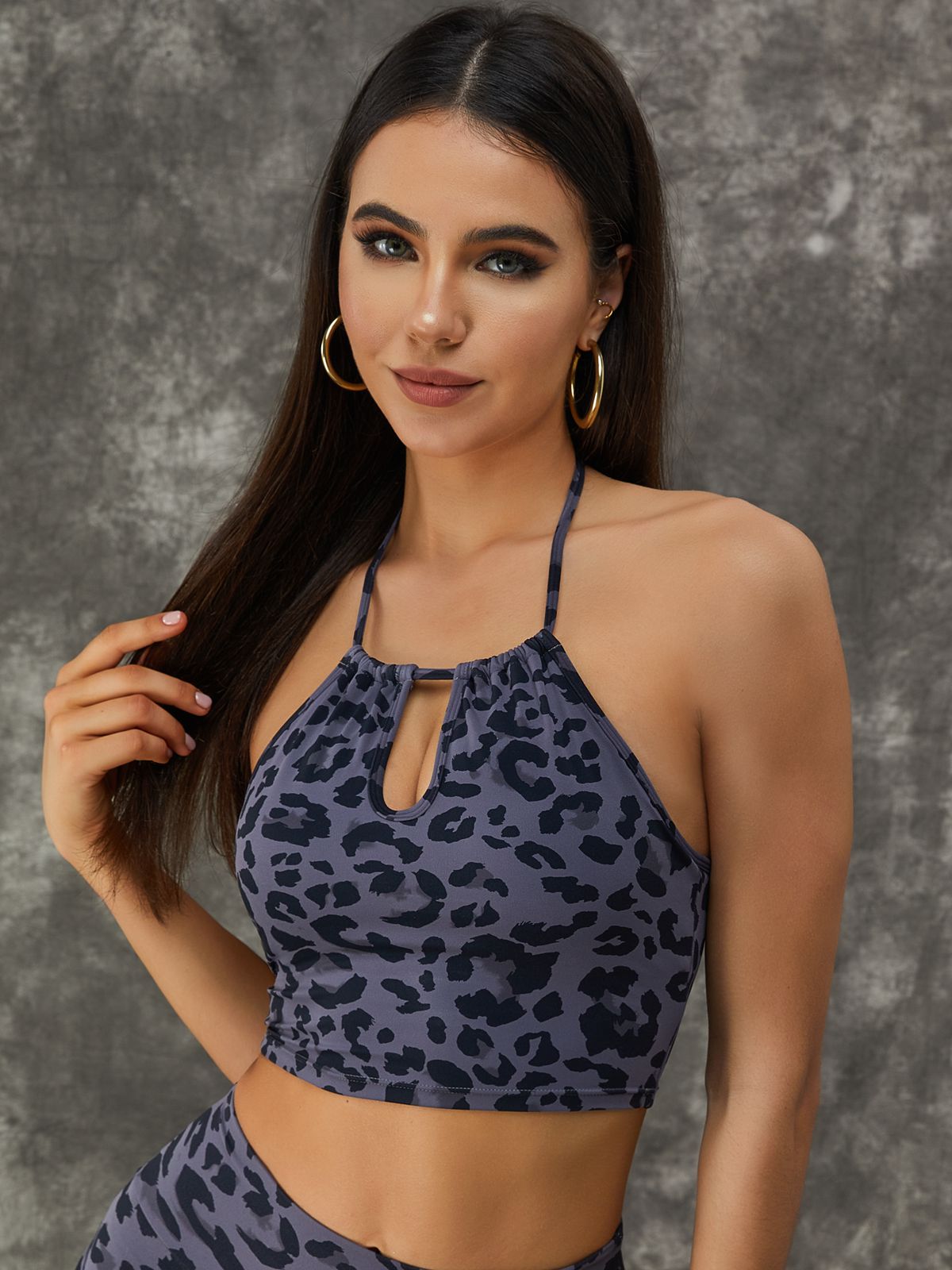 ZASUWA Female Leopard Print Hollow Out Halter Sports Bras