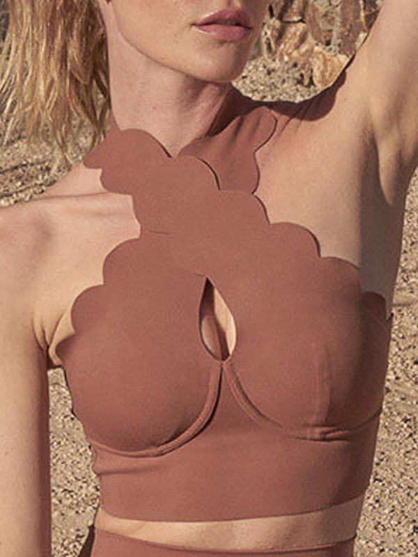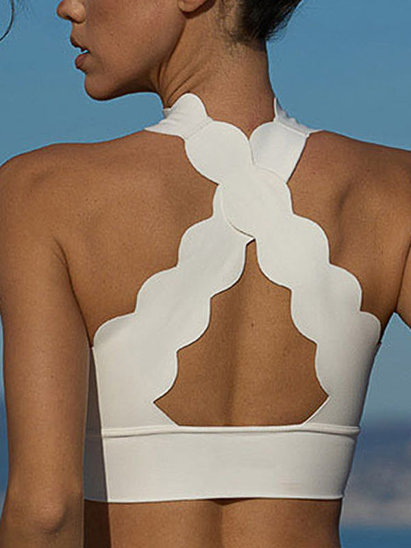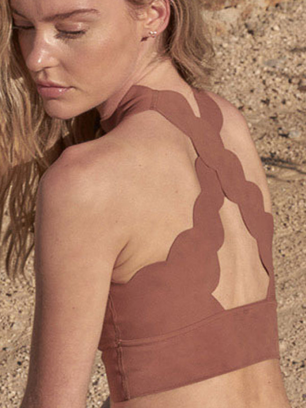 ZASUWA Female Lace Nude Sensation Elastic Tight Cross Halter Hollow Out Sports Bras