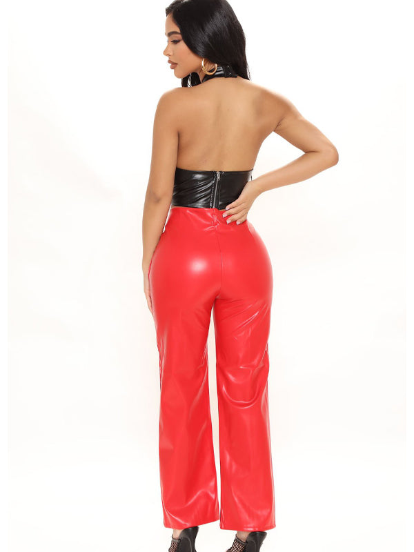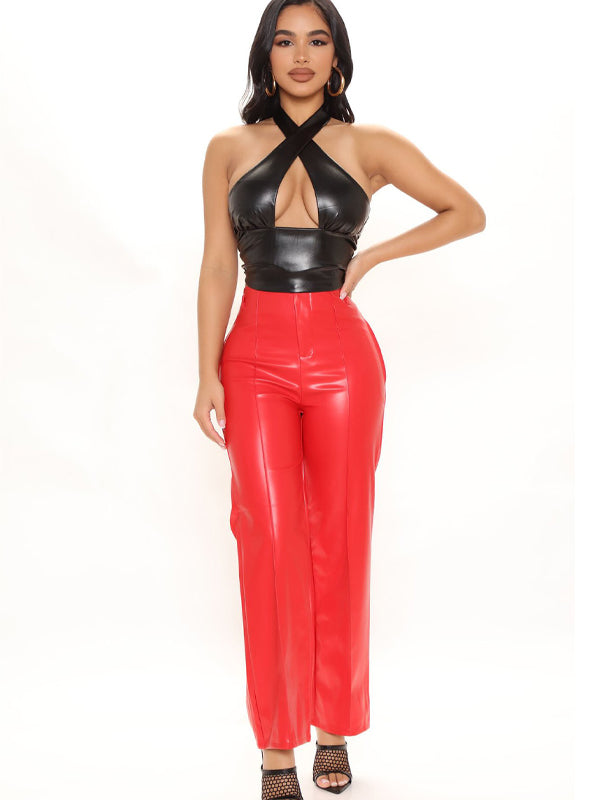 ZASUWA Female Sexy PU Glossy Hollow out High-support Zipper Sports Bras
