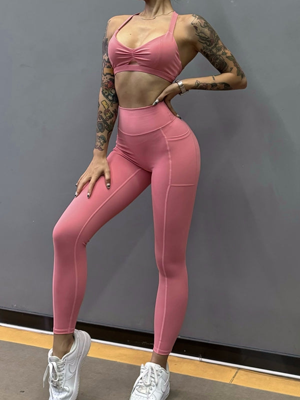 ZASUWA Female Folds Cutout Cross Back Sports Bras