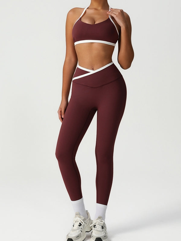 ZASUWA Female Sexy Contrast Color Stripe Cross Back Sports Bras