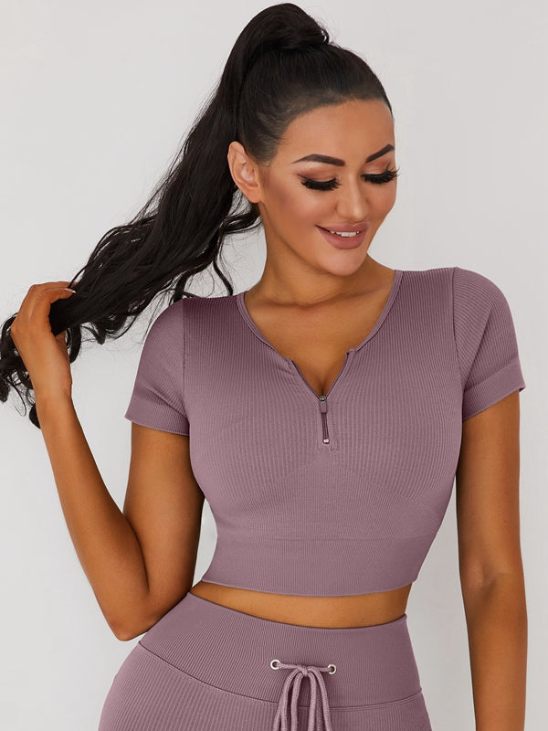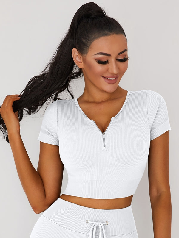 ZASUWA Female Knitted Chest Zipper Yoga Short Sleeves